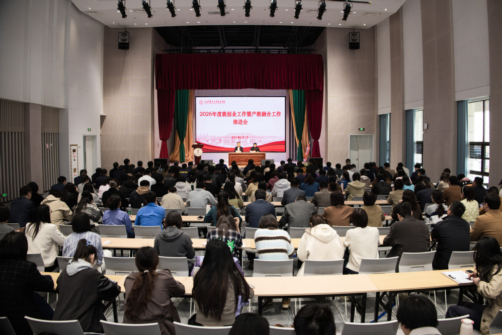4月1日,学院2026年就创业工作暨产教融合工作推进会在风华楼小报告厅召开。学院领导班子成员、各部门副主任及以上管理干部、全体辅导员和班主任参加会议。院长张立荣出席会议并作总结讲话,院党委书记刘晓莲主持会议。