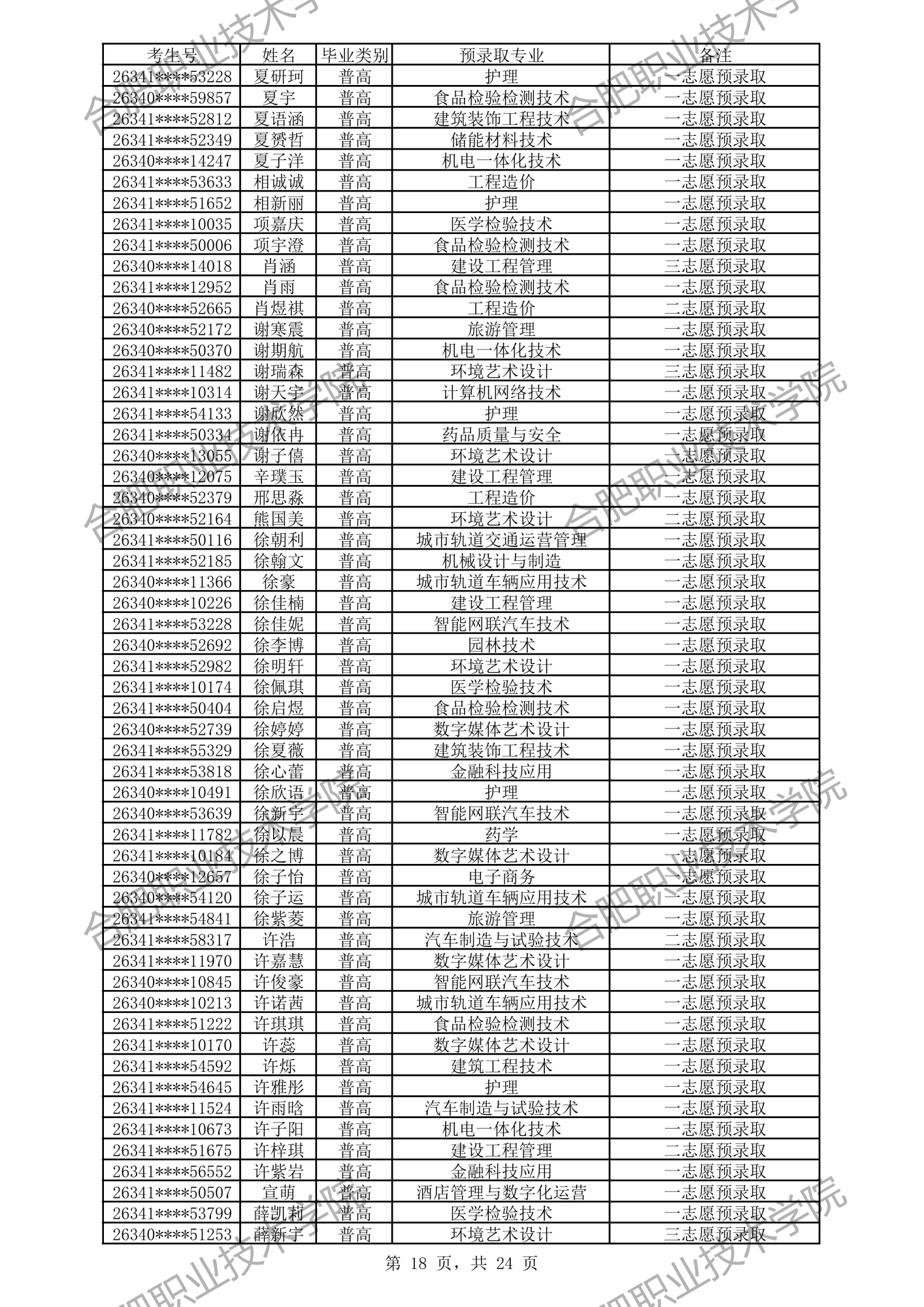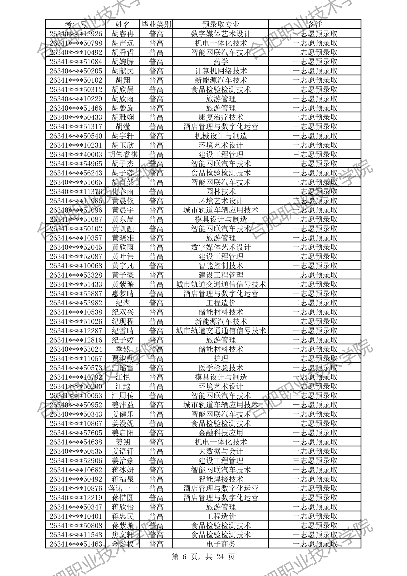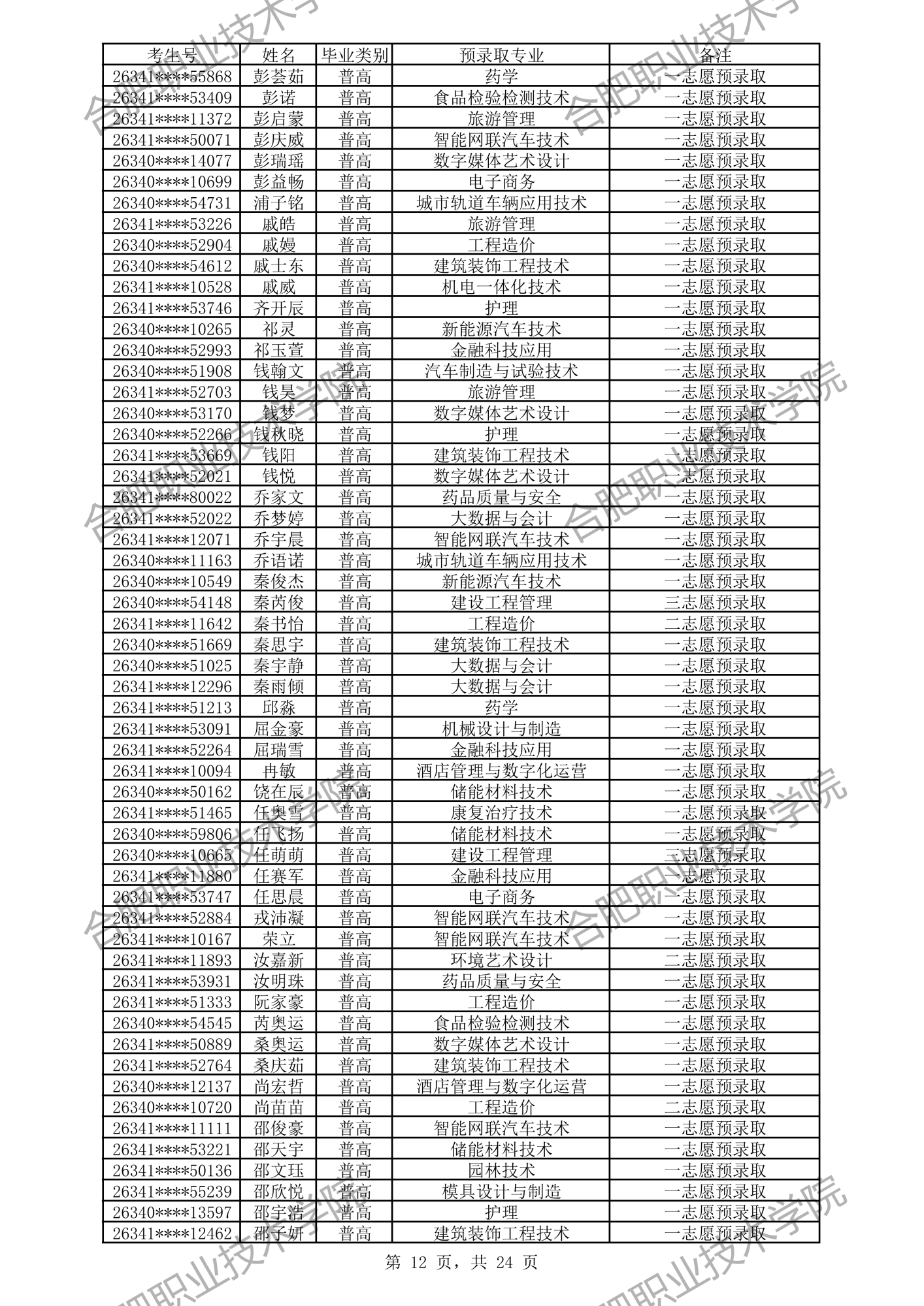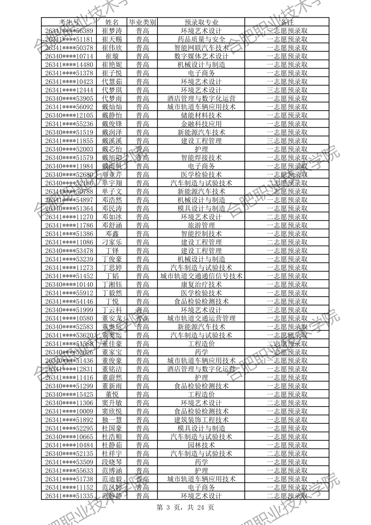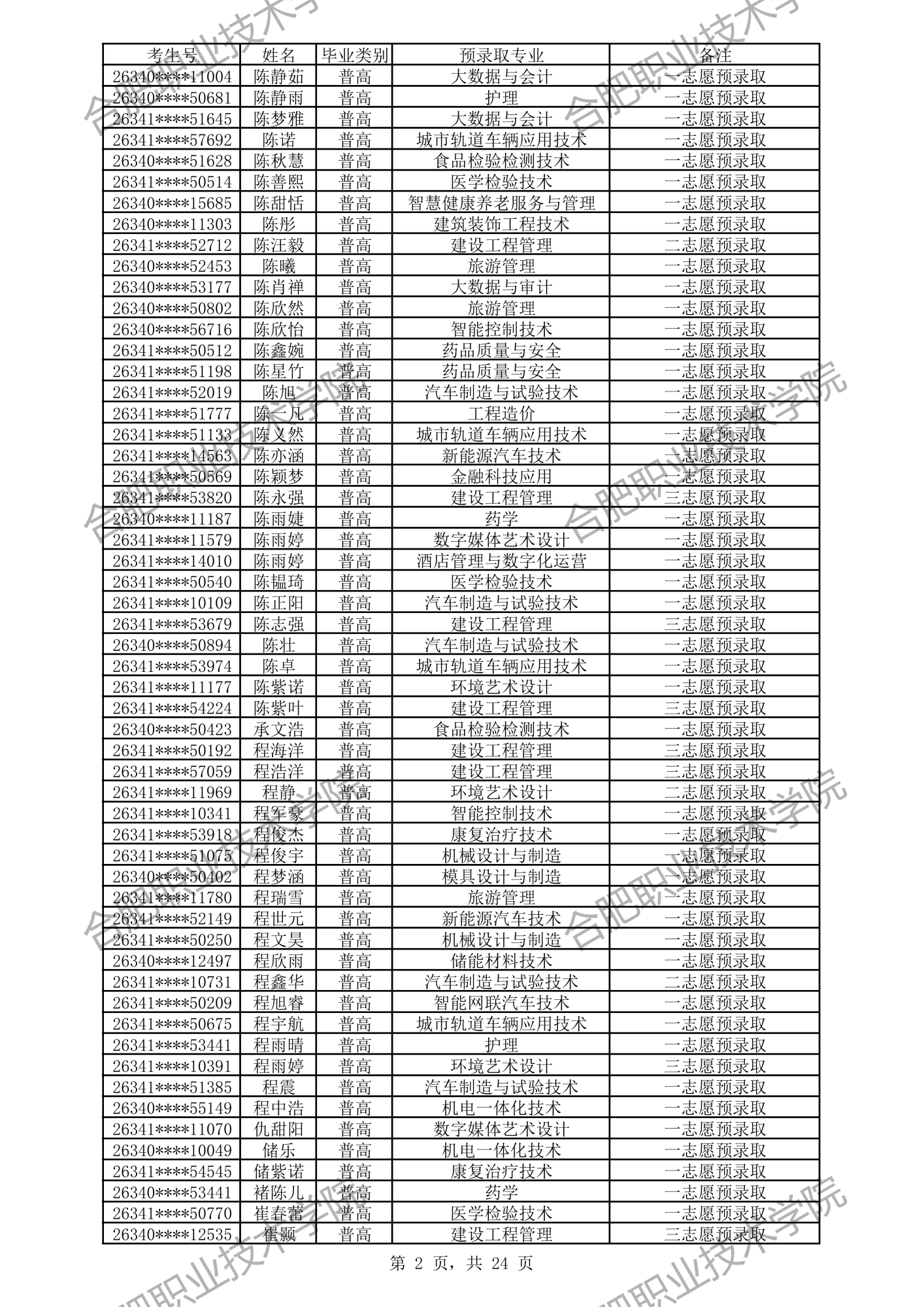 合肥职业技术学院2026年分类考试招生预录取及递补预录取名单公示