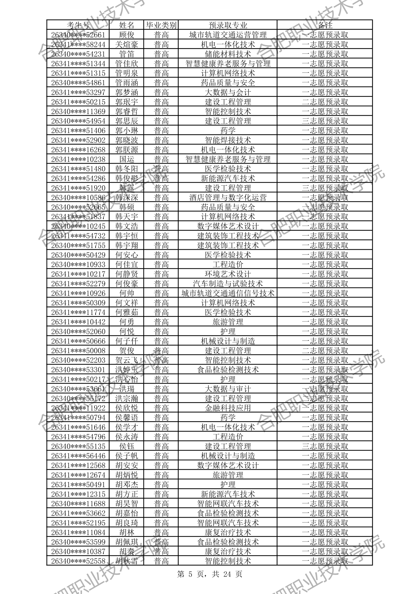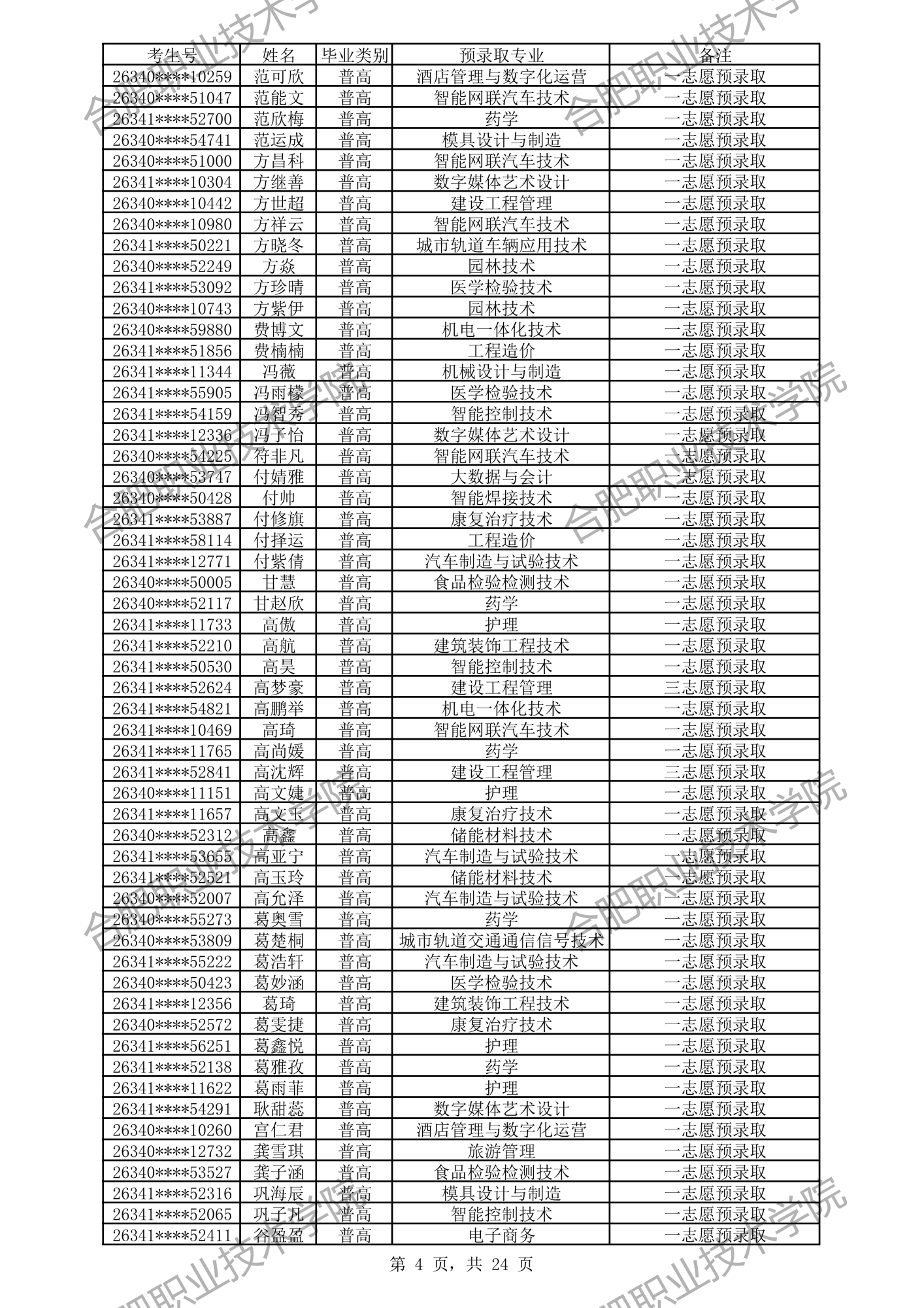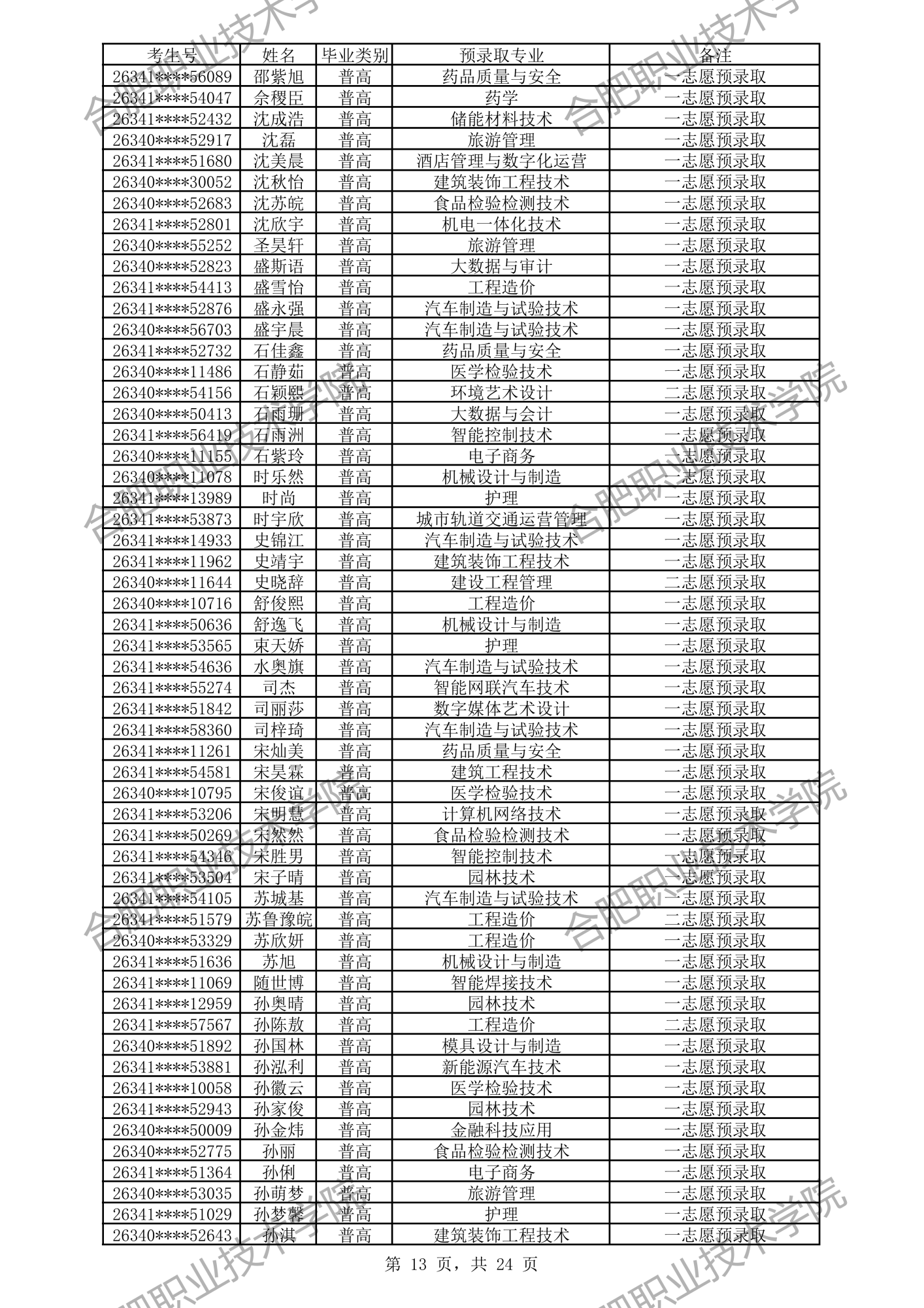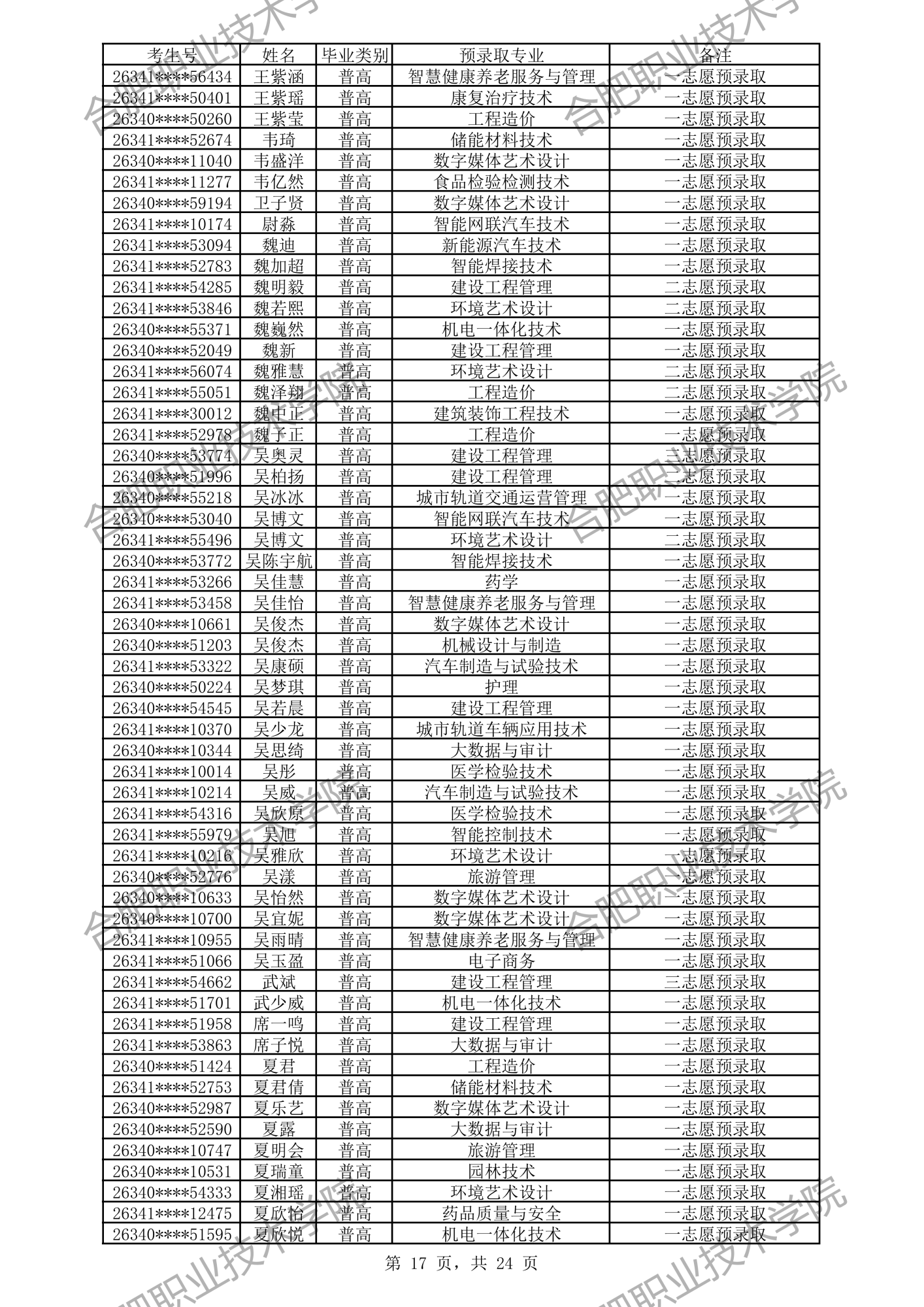 合肥职业技术学院2026年分类考试招生预录取及递补预录取名单公示