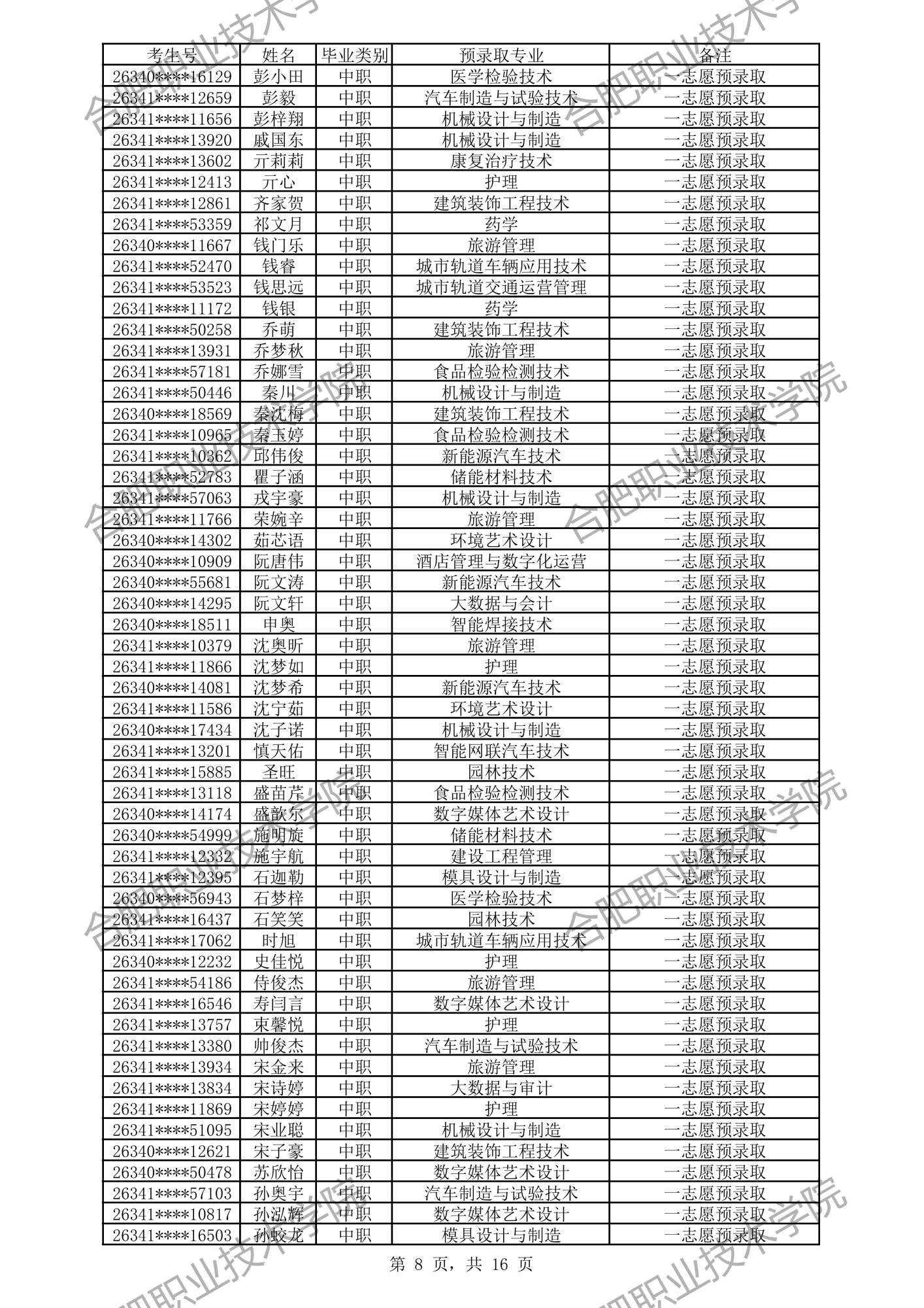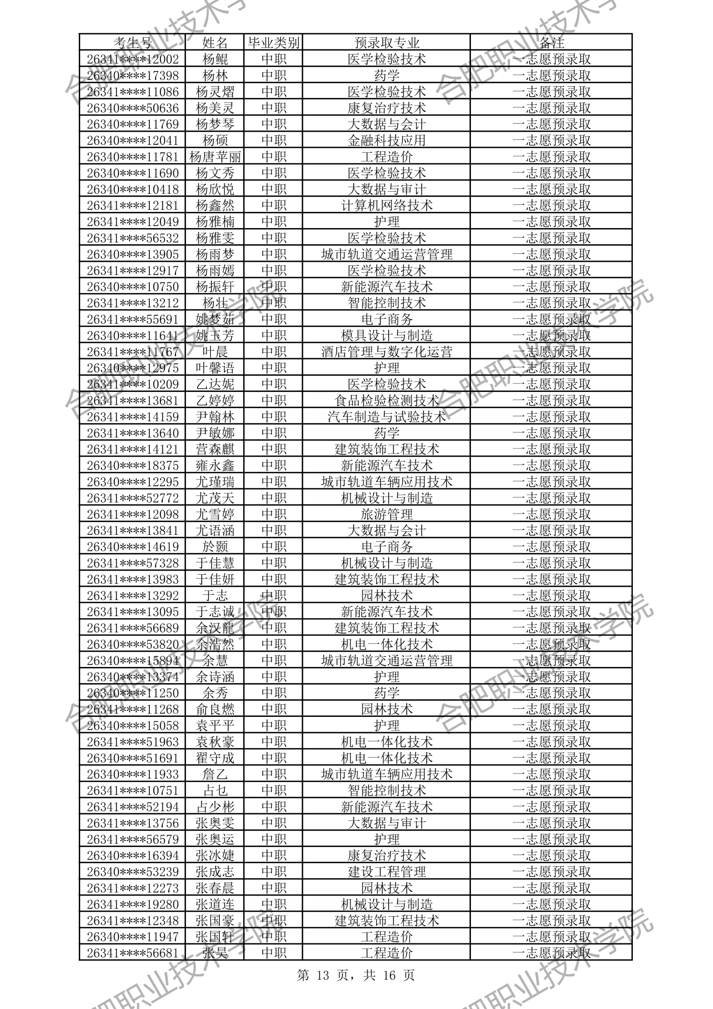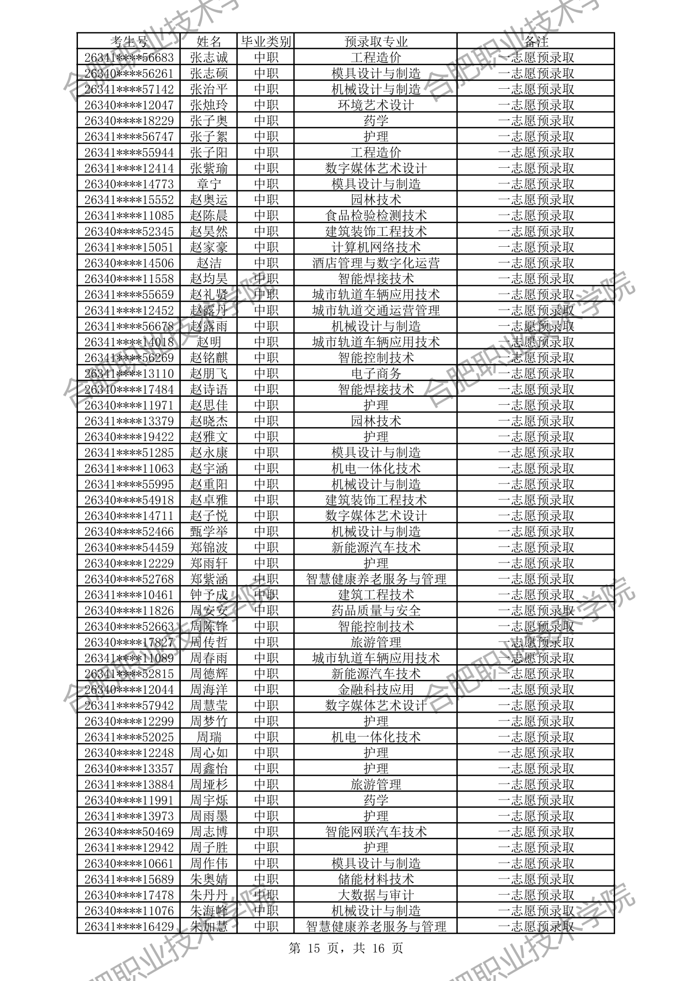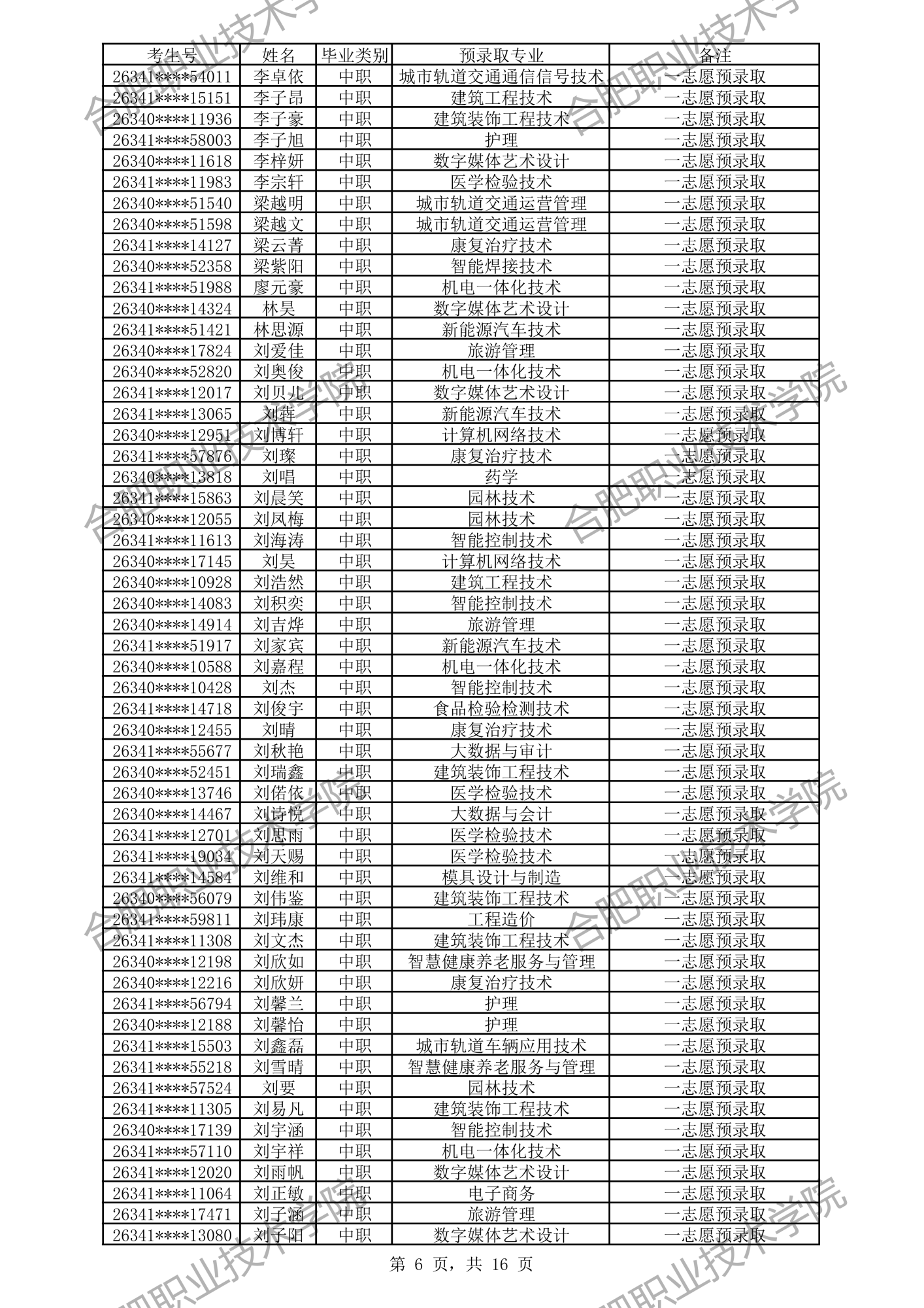 中职预录取名单: