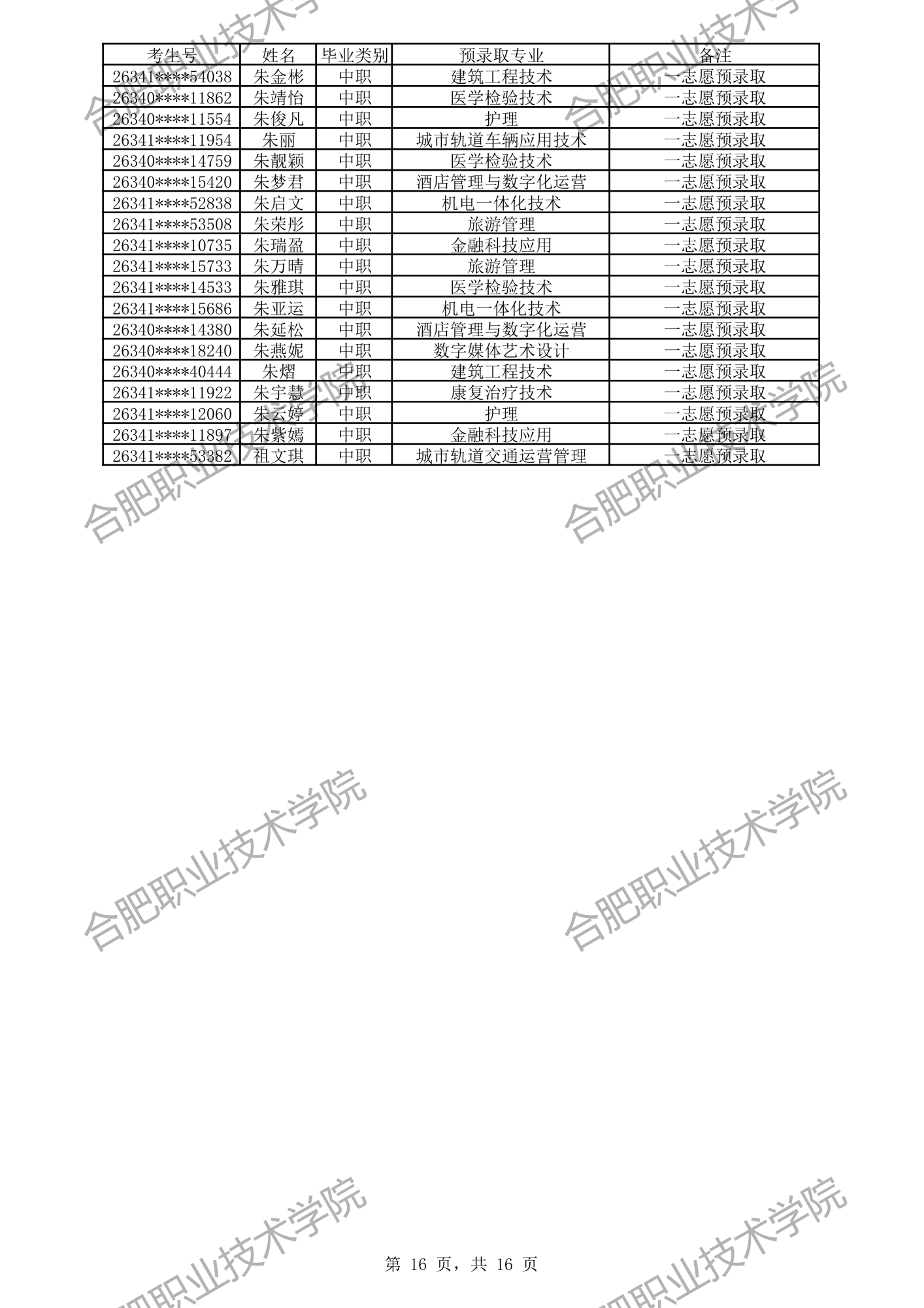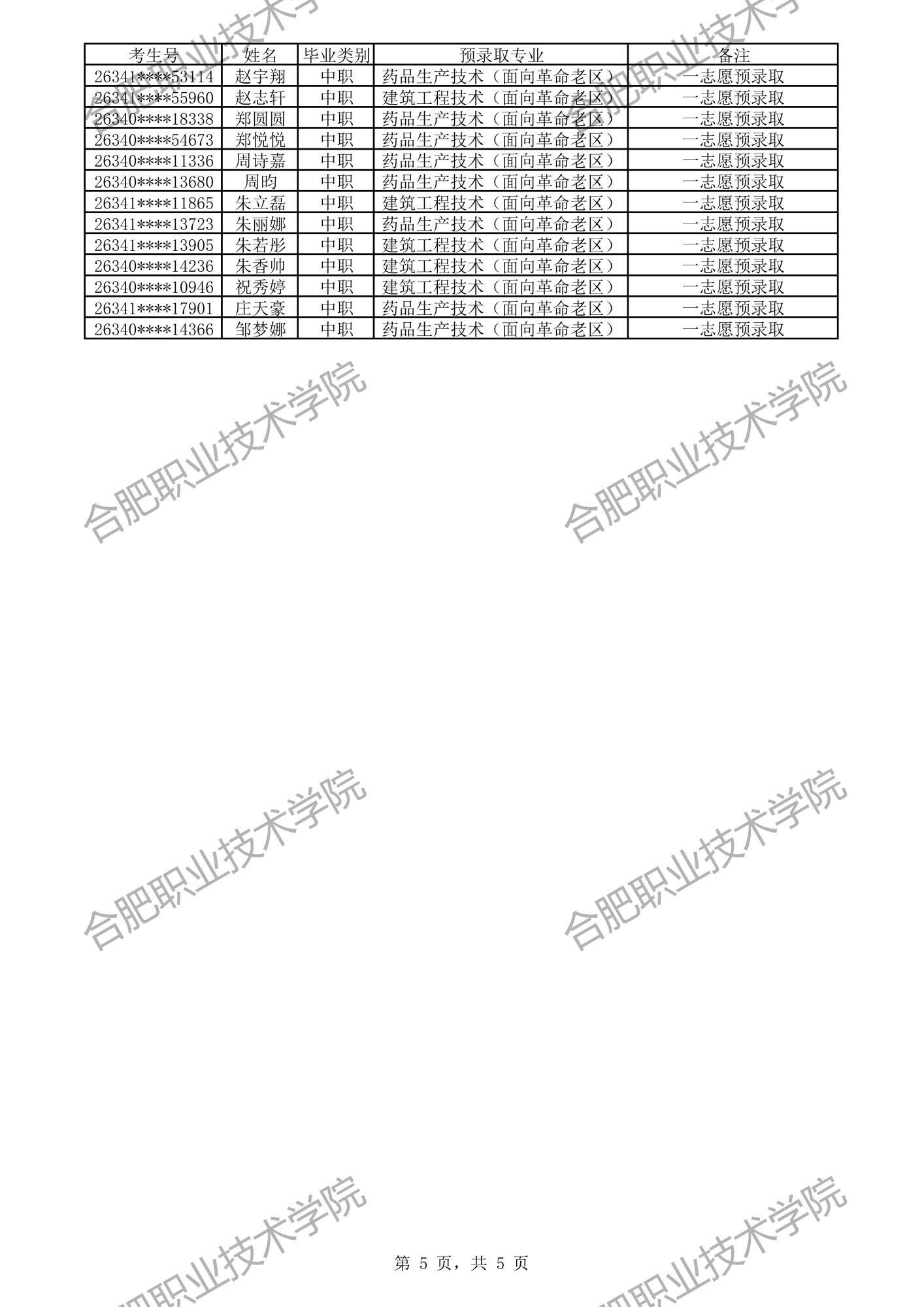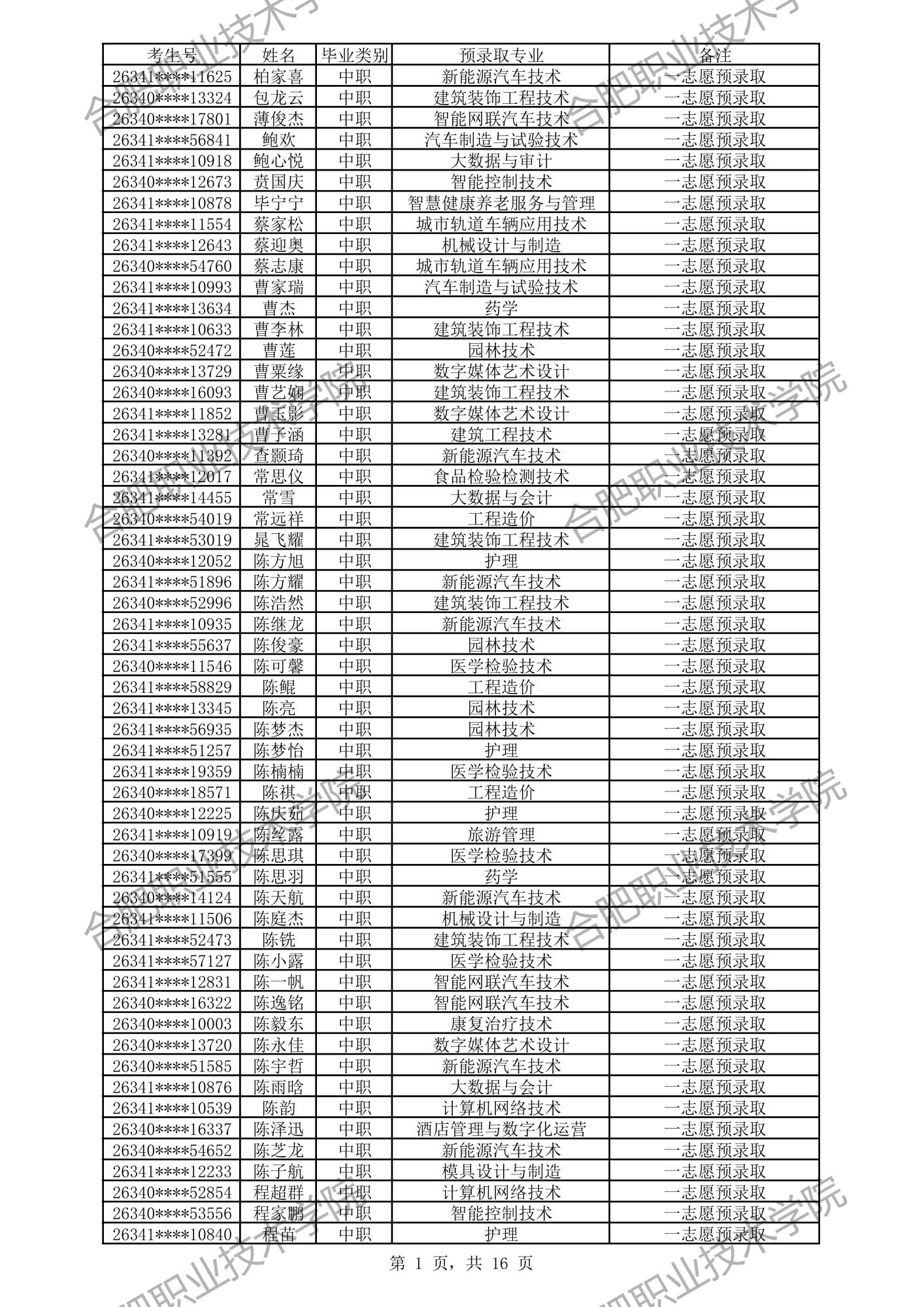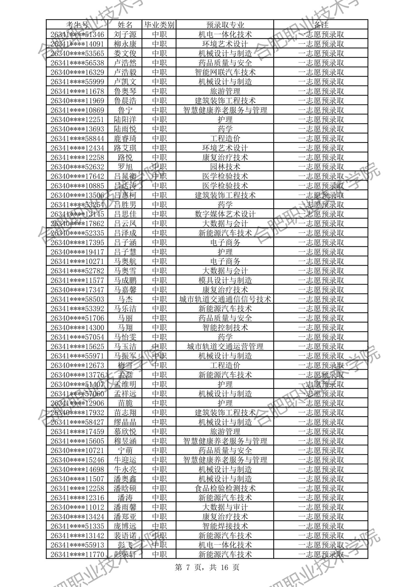 中职预录取名单:
