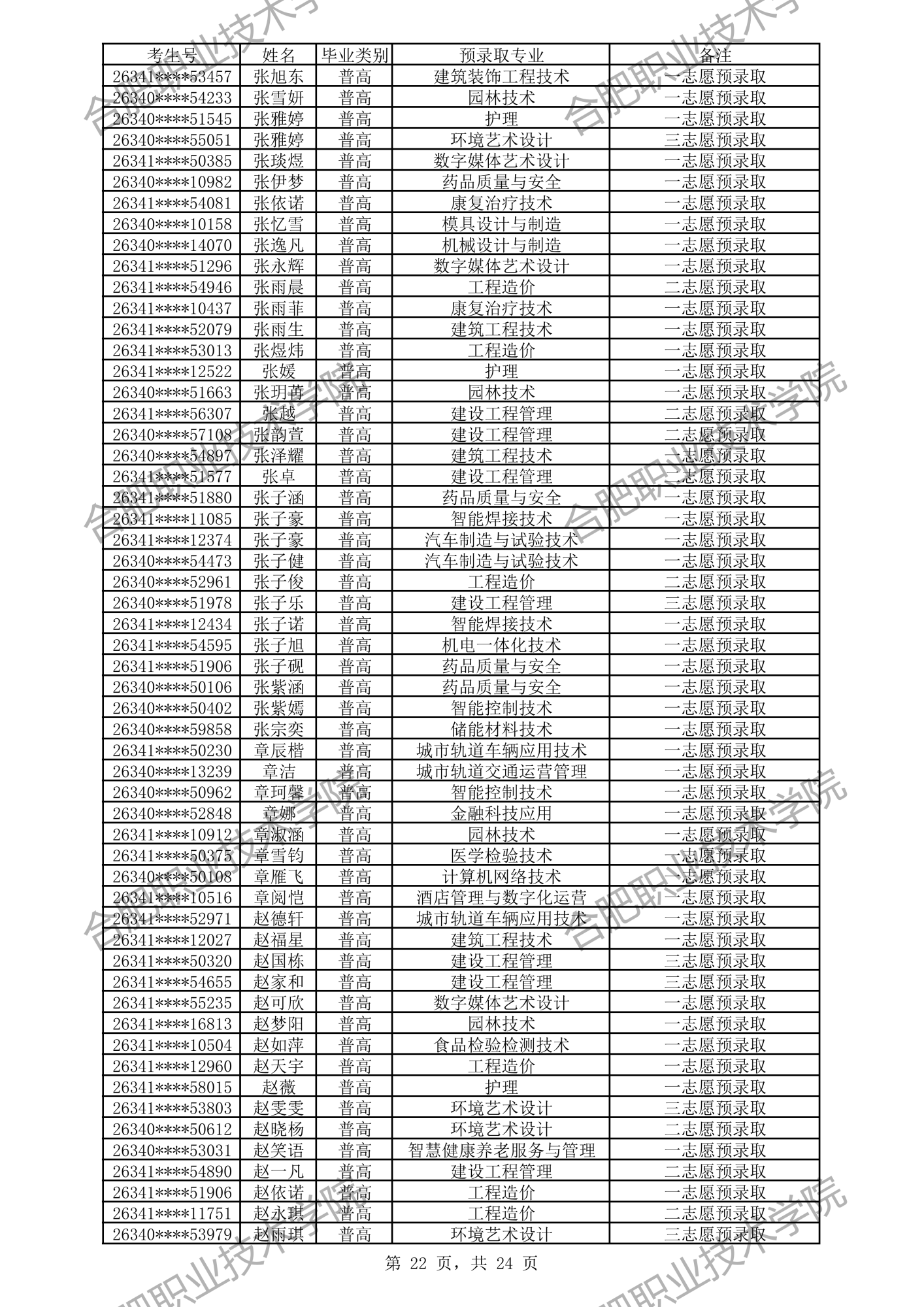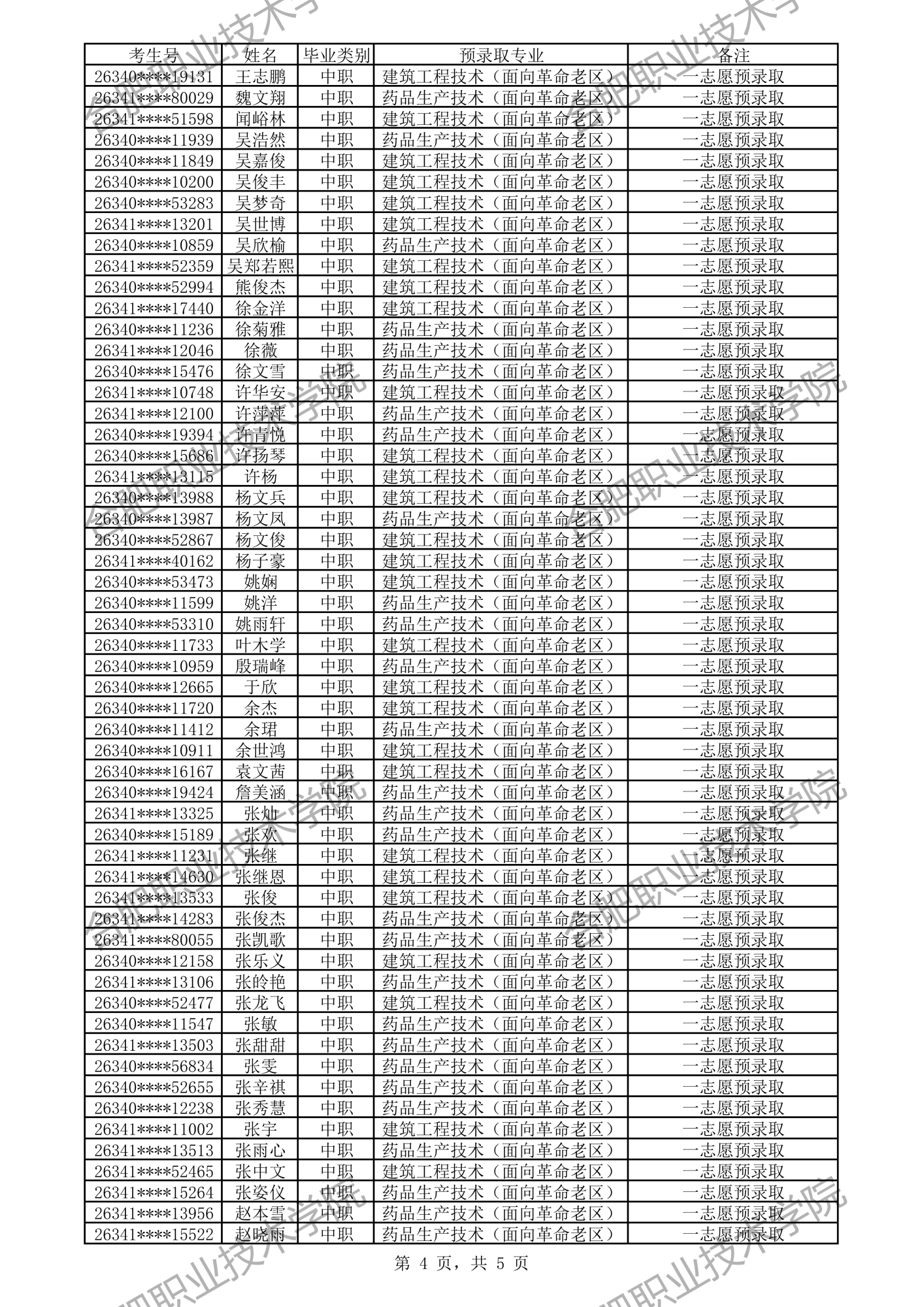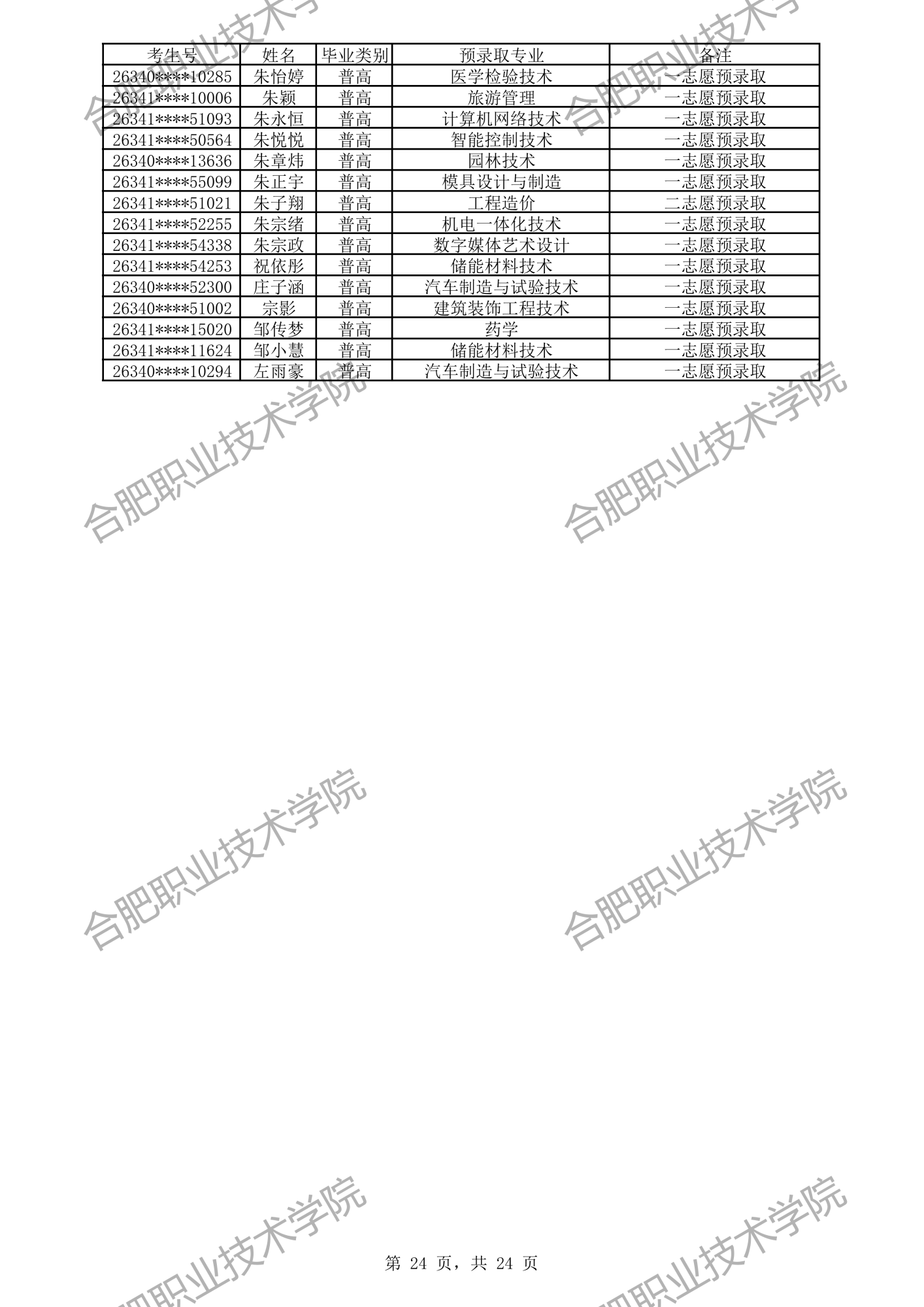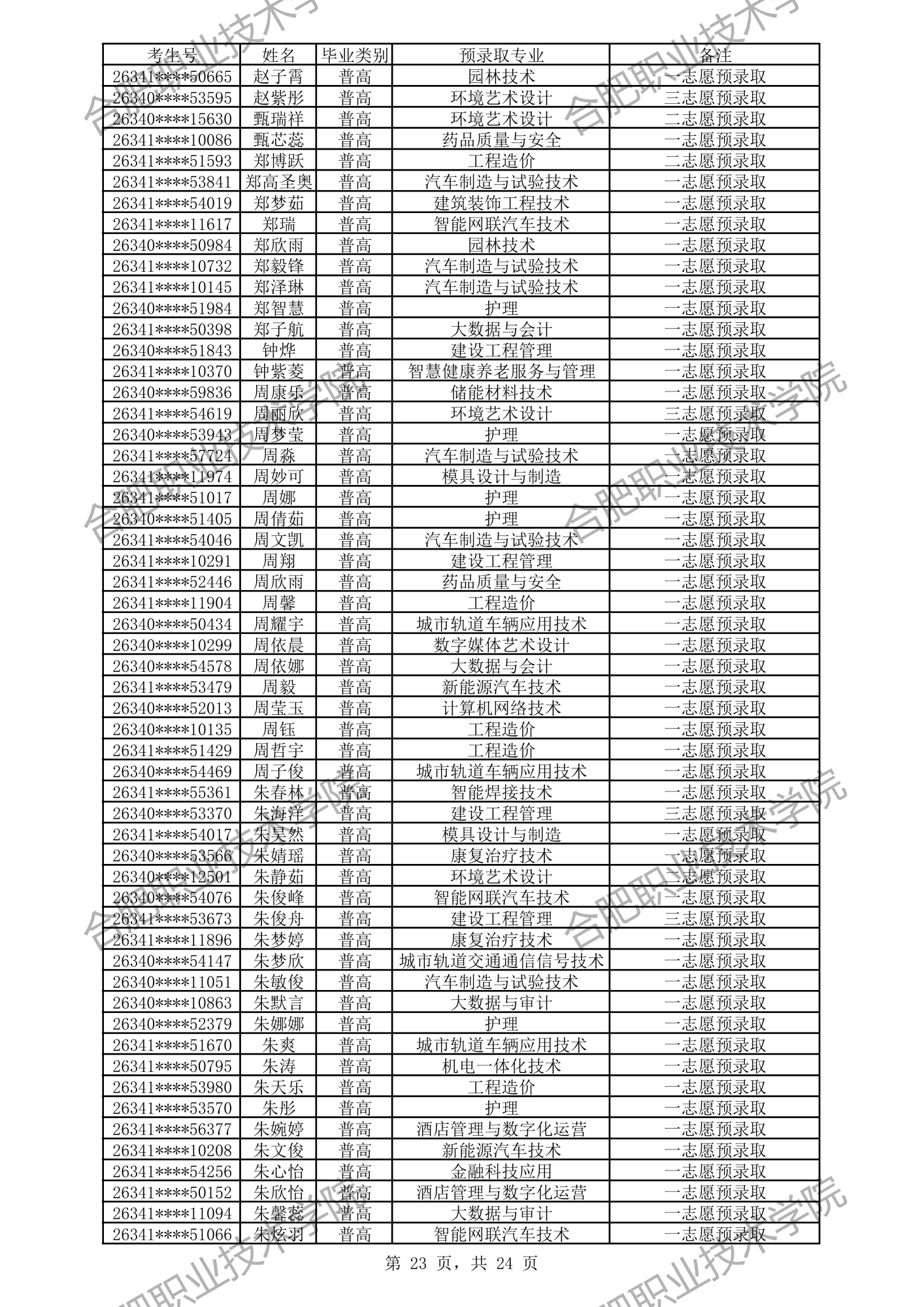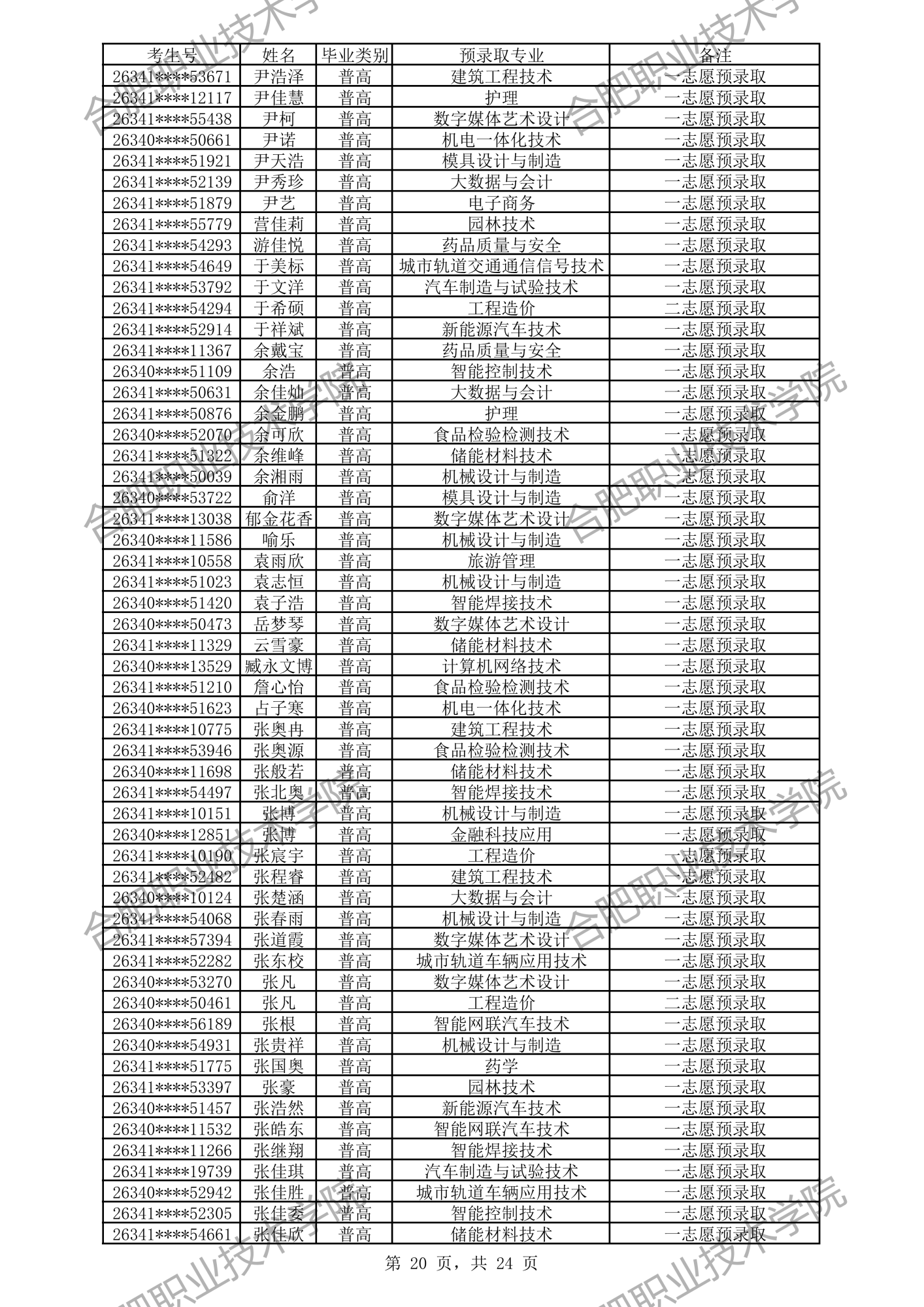 中职预录取名单: