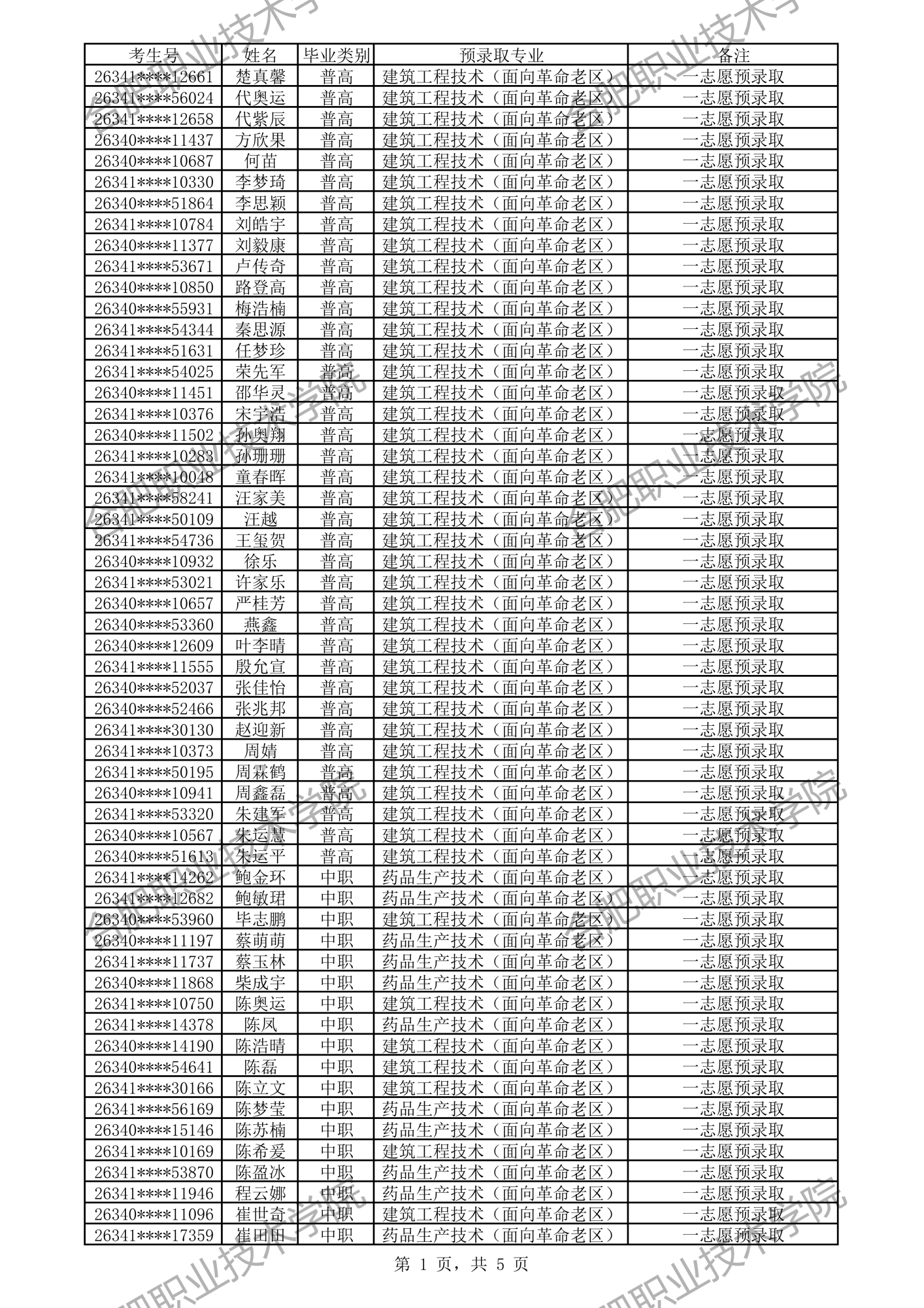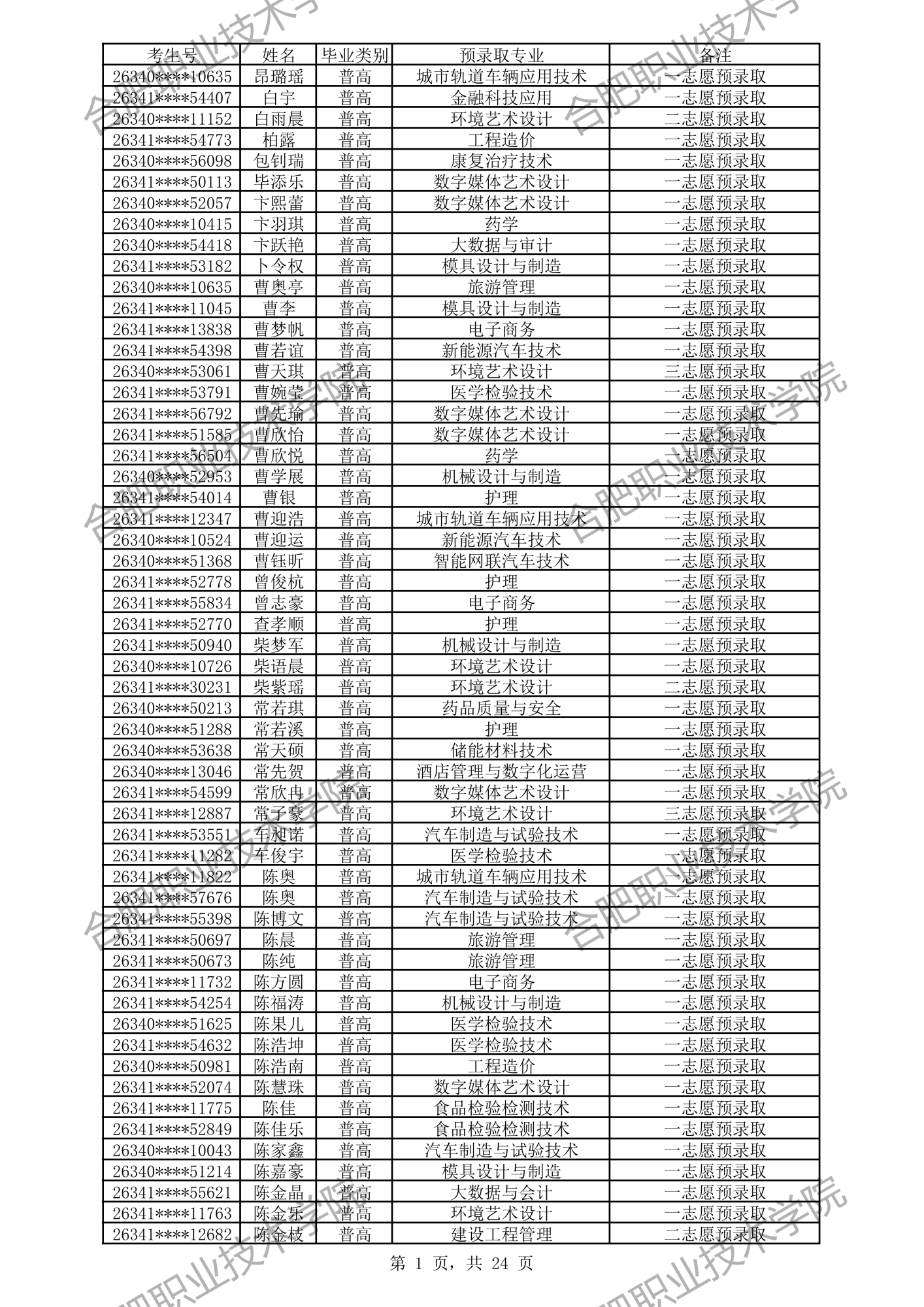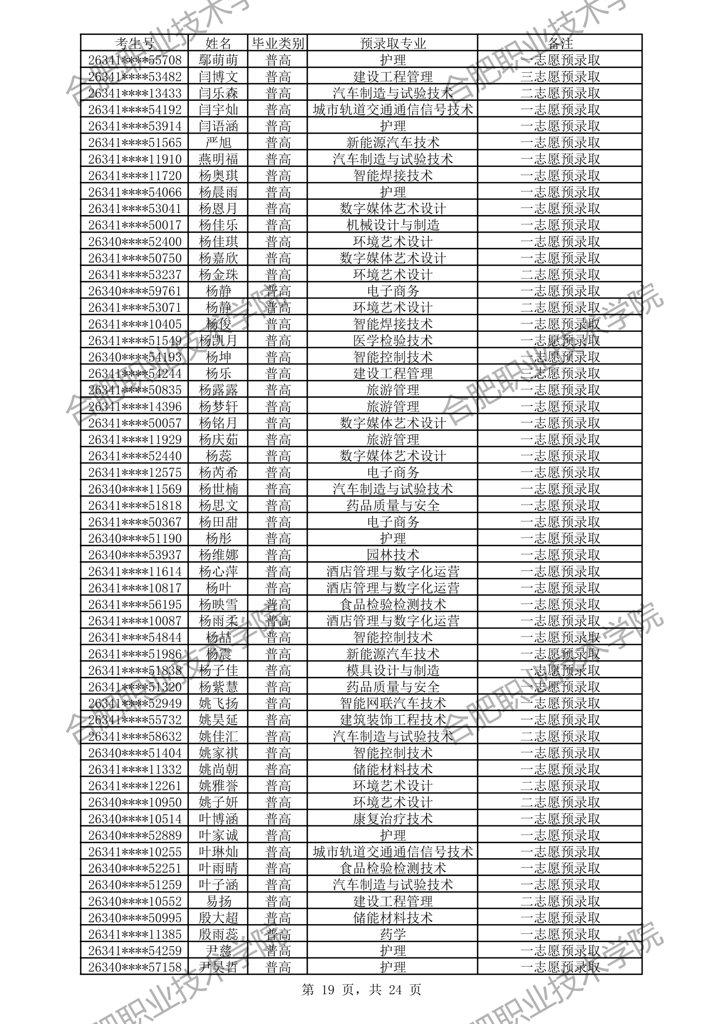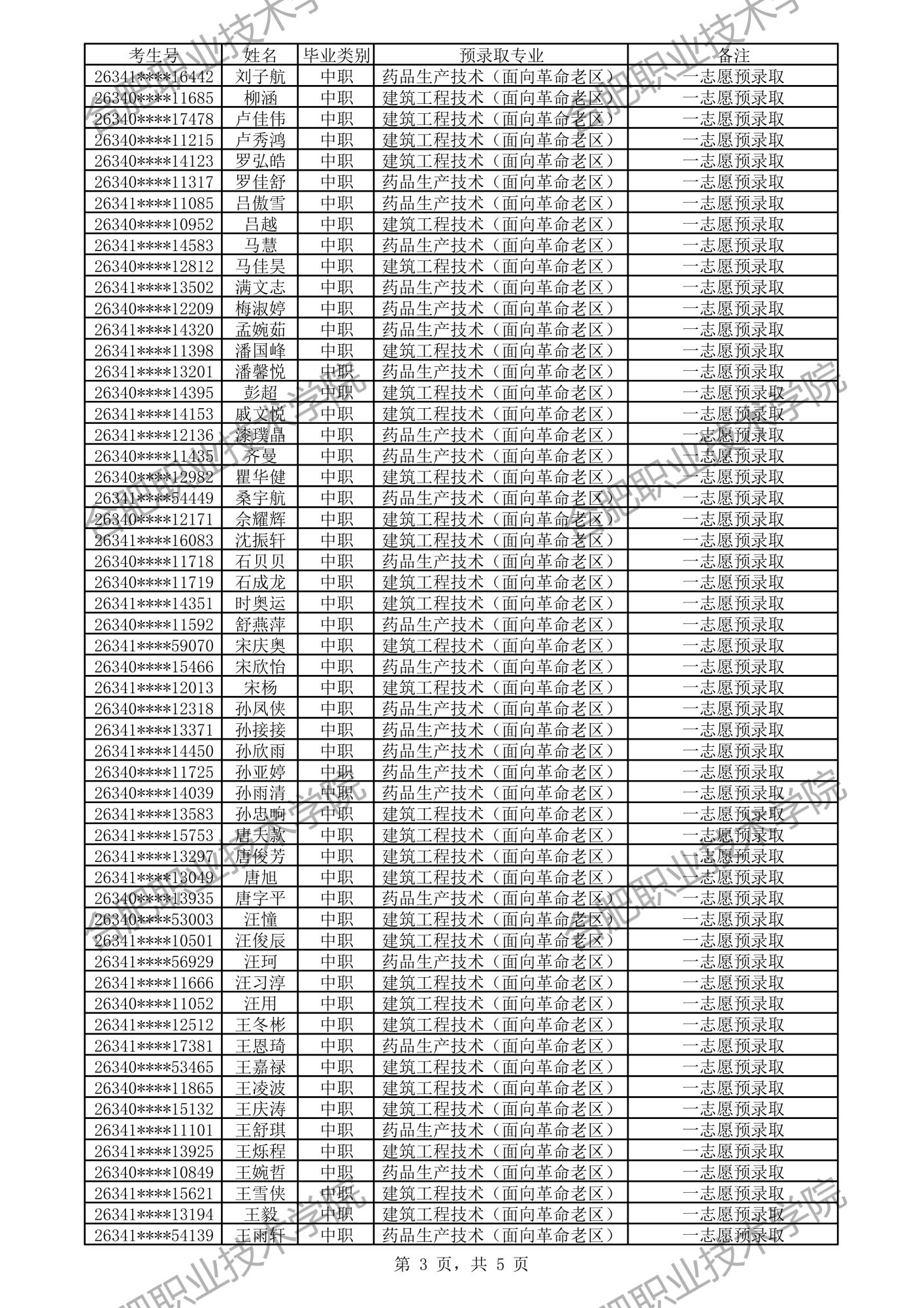 中职预录取名单: