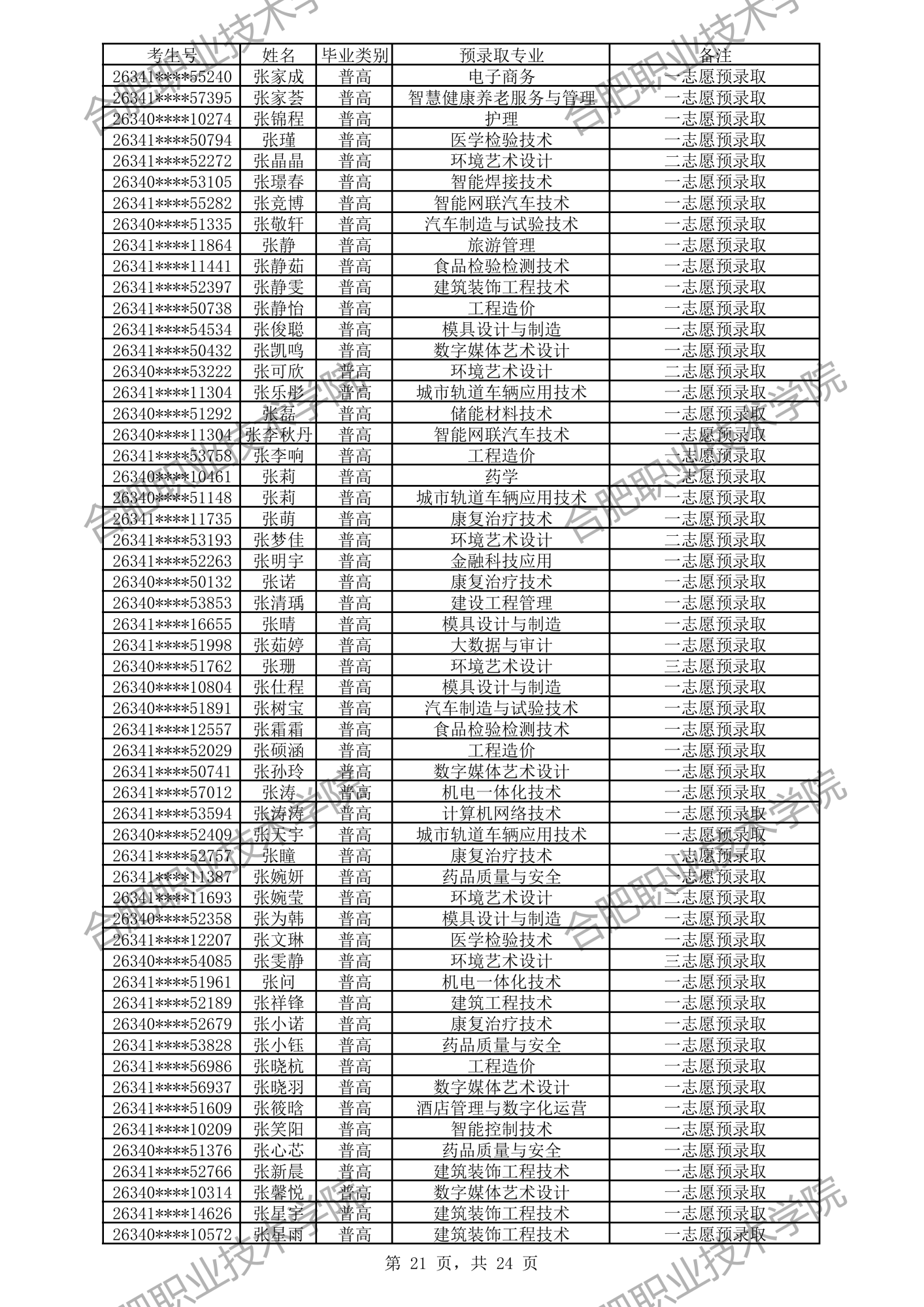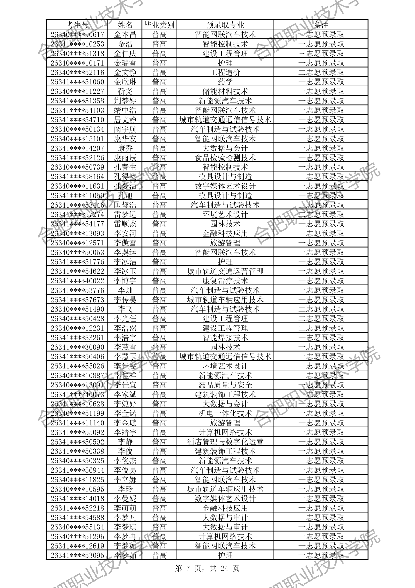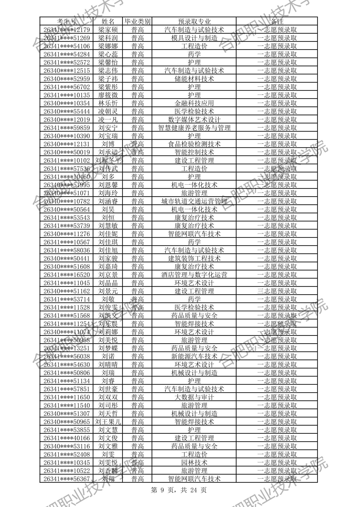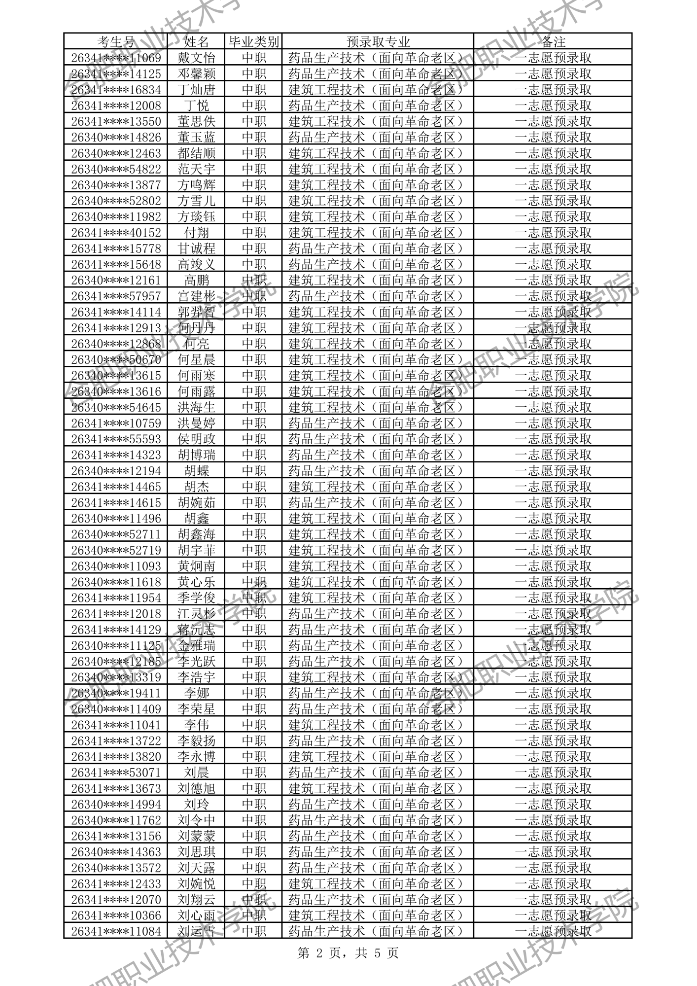 中职预录取名单: