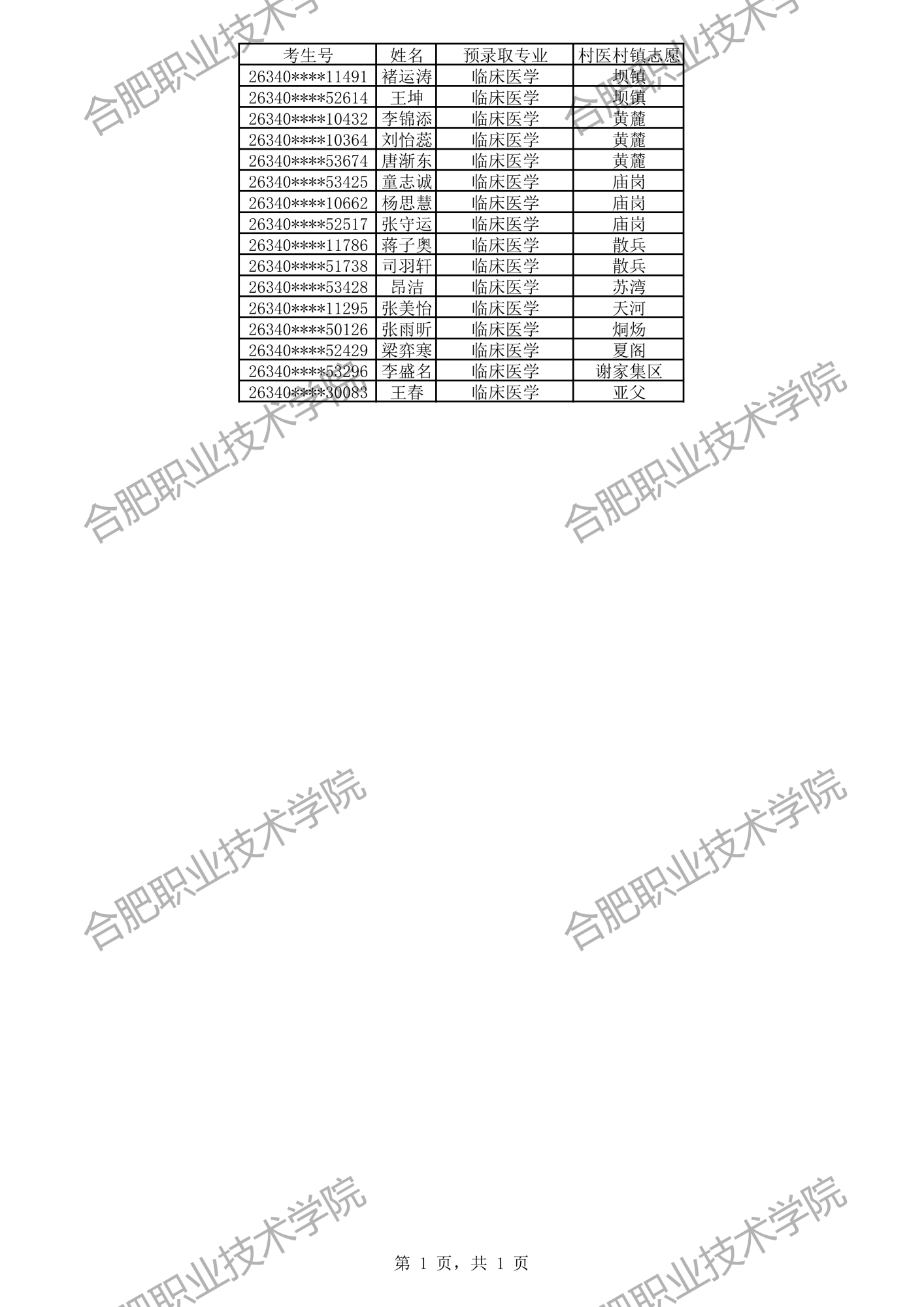 乡村医生定向委培预录取名单: