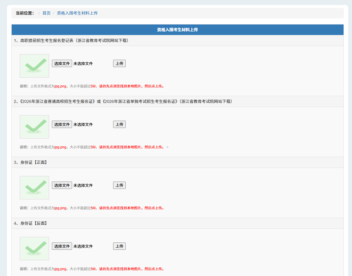 报名证从浙江教育考试院网站下载,将报名证电子稿上传,样稿如下图所示: