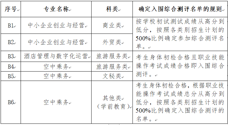B4 | 空中乘务 | 旅游服务类 | 身体初检合格且职业技能操作考试成绩合格者均上线 |