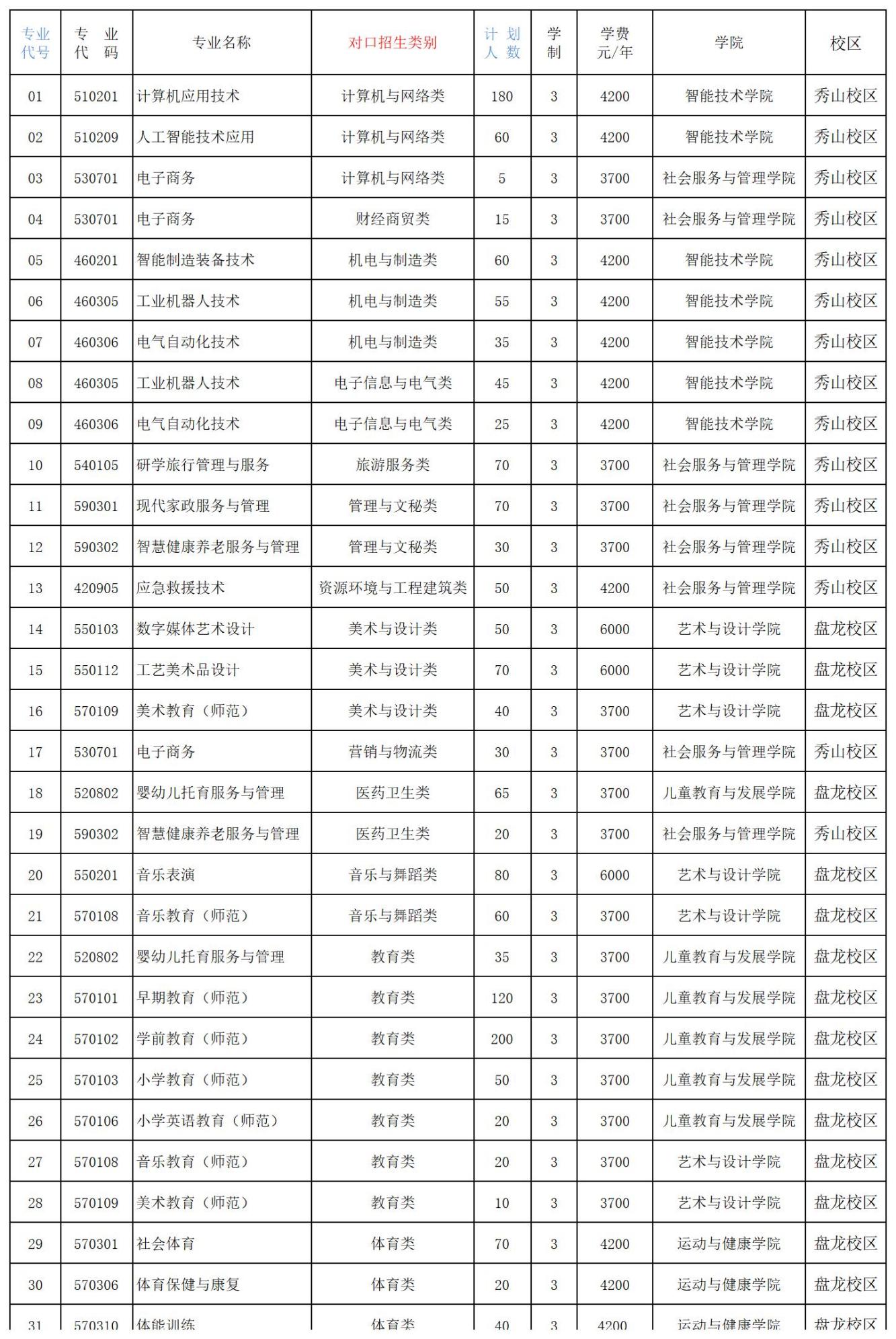 四、2026年我校对口招生志愿填报专业代号及招生计划一览表