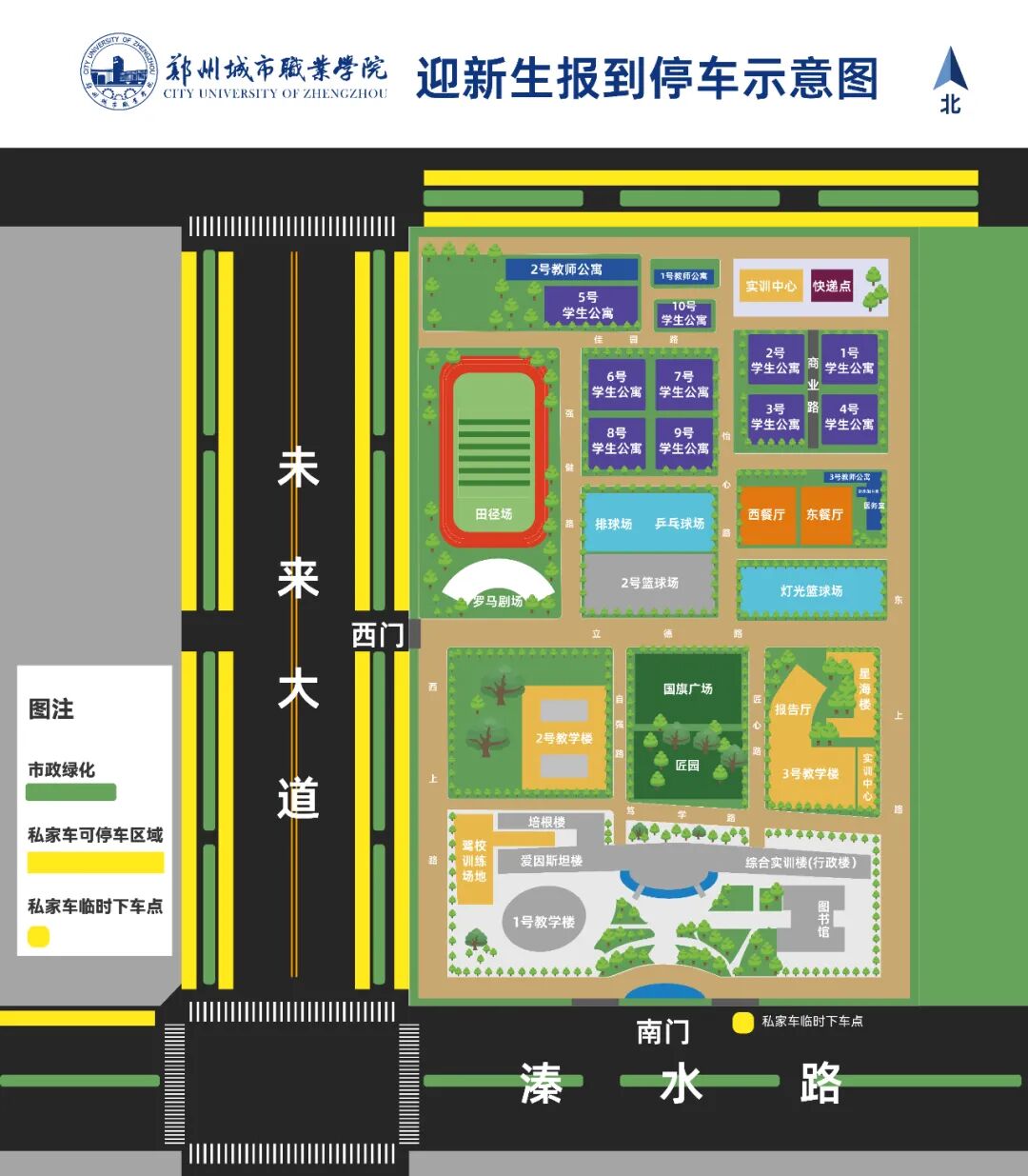 同学们乘坐私家车到校后,根据“进人不进车”的原则,通过多条人行通道进入校园,送行家长可以将车辆停在学校西侧未来大道和溱水路上,建议提前做好出行规划,避免交通拥堵。所有人员请从学校南门进入。