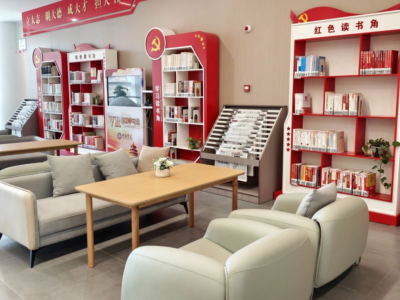 懒人沙发+红色读书角:瘫进云朵般的懒人沙发里,被热烈的红色读书角包围,随手抽一本好书,就能解锁“躺平式阅读”的快乐,学习也能变成享受。