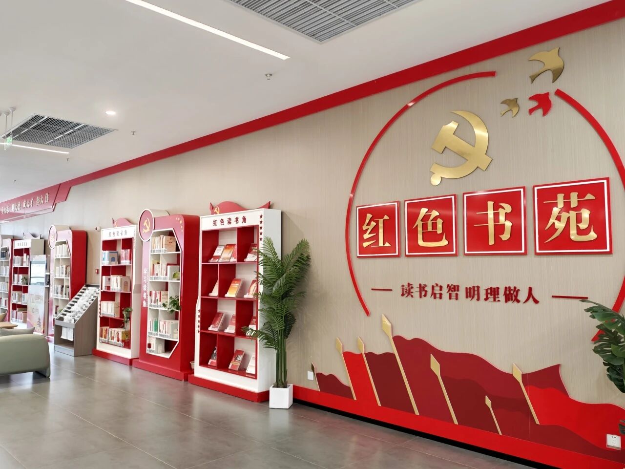 图书按学科精细分类,线上检索可精准定位;楼梯右侧藏书架随手可取,红色书苑、智能科技阅览区等功能分区清晰,阅读学习高效便捷。