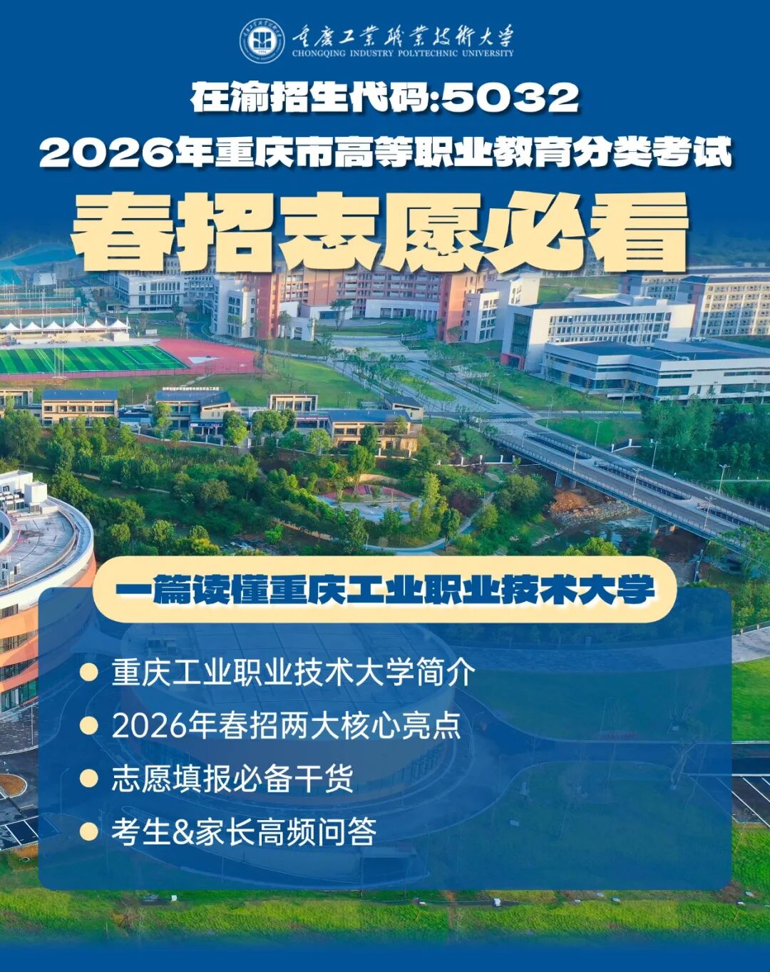 重庆工业职业技术大学,于2025年正式升格为公办本科层次职业大学,是重庆市首个制造业领域公办职业技术大学。