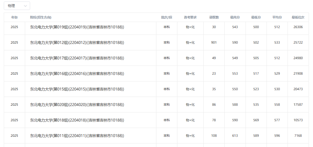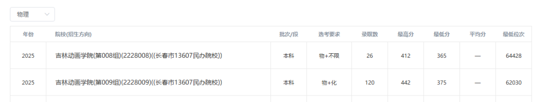 2025年吉林省录取分数情况