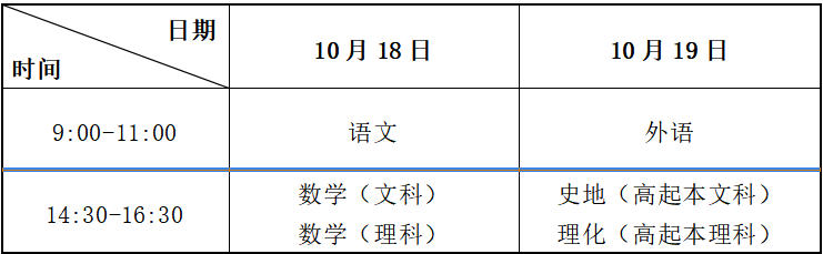 全国统一考试 | 省教育考试院、市(州)教育考试招生机构 | 10月18日至19日 | |