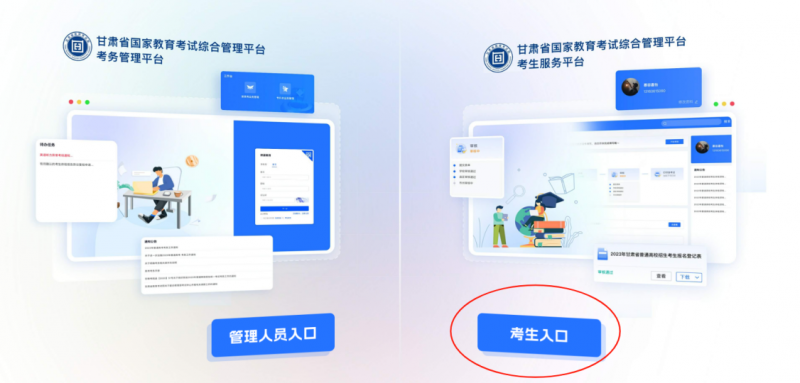 第一步:通过电脑端进入甘肃省教育考试院官网(网址:https://www.ganseea.cn),进入官网后,点击进入下方【甘肃省国家教育考试综合管理平台】模块(图1)。