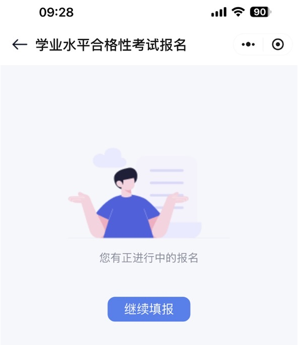 第四步:点击继续填报或者填报按钮进行学业水平考试报名(图5、图6、图7)。