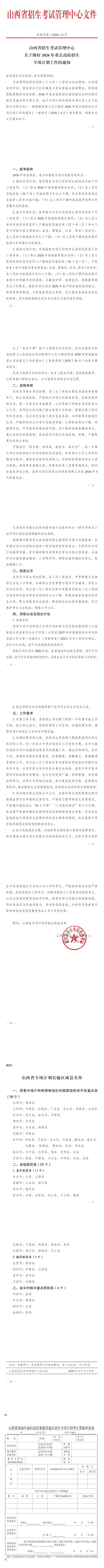 山西省招生考试管理中心关于做好2026年重点高校招生专项计划工作的通知