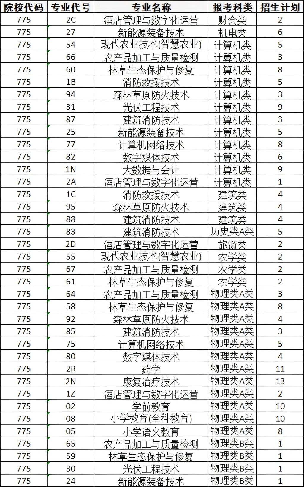 3、第二次单招招生专业及代码