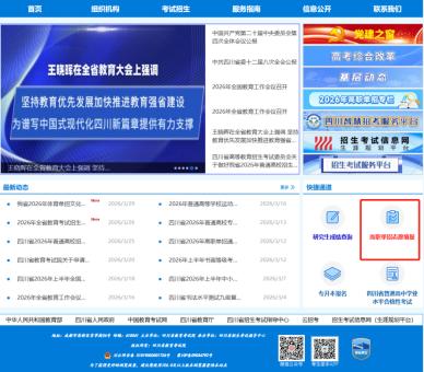 考生登录四川省教育考试院官网,可点击下图中“高职单招志愿填报”或“2026年高职单招专栏”从“志愿填报入口”进入高职单招信息管理系统登录页。