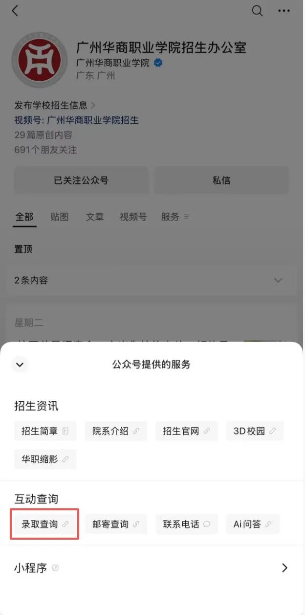1.关注我校官方微信公众号“广州华商职业学院招生办公室”