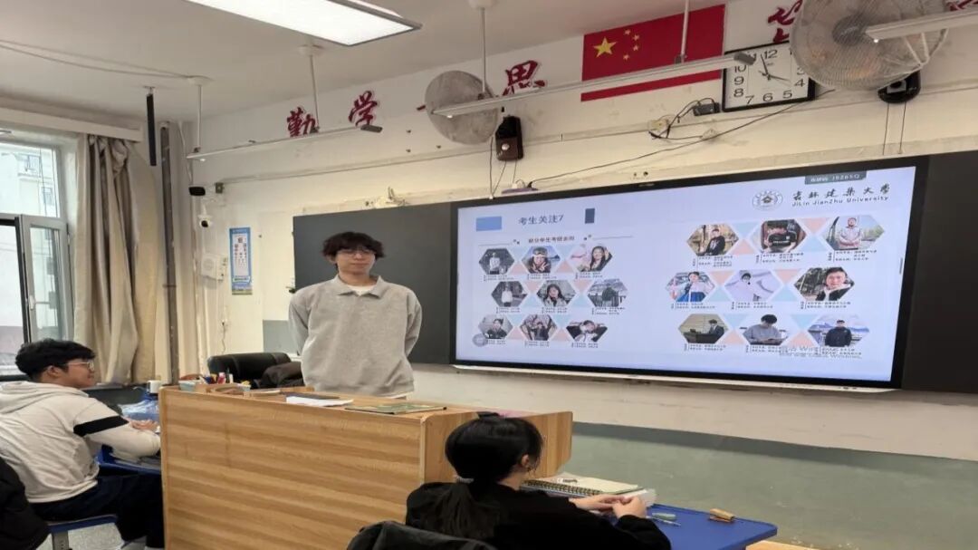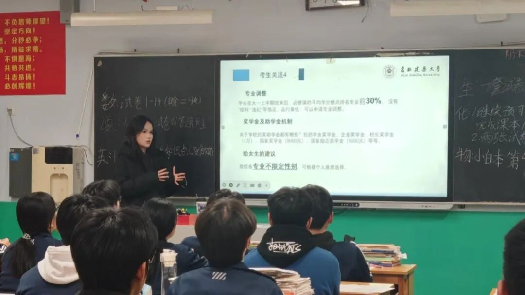 活动中,教师团队与各校班主任开展专题座谈,双方就生源特点、人才培养衔接及报考趋势等话题进行了深入交流。宣讲团走进高三班级开展专场宣讲,多角度介绍学校的办学定位、学科布局与师资优势,并通过典型案例,分享近年来学校在科创竞赛、产教融合、基层实践等领域取得的丰硕成果。针对新高考背景下的志愿填报需求,团队成员深入解读最新招录政策,重点围绕专业选择逻辑与院校匹配策略进行分享,为在场学子提供了贴近实际的报考指南。与此同时,宣讲团向同学们发放了学校宣传材料,以温情互动拉近校际距离,为推动协同育人、助力优质生源成长奠定了坚实基础。