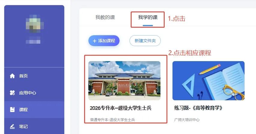 2.进入课程后,点击“考试”,再点击相应的“考试科目”