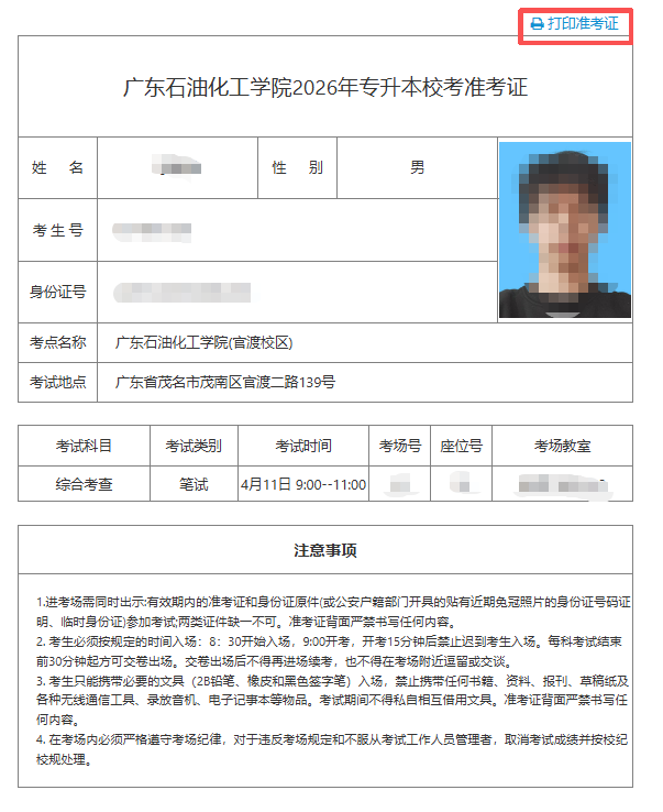 准考证打印地址:http://baoming.amesoft.cn/searchPage.action?pid=gdupt2026&