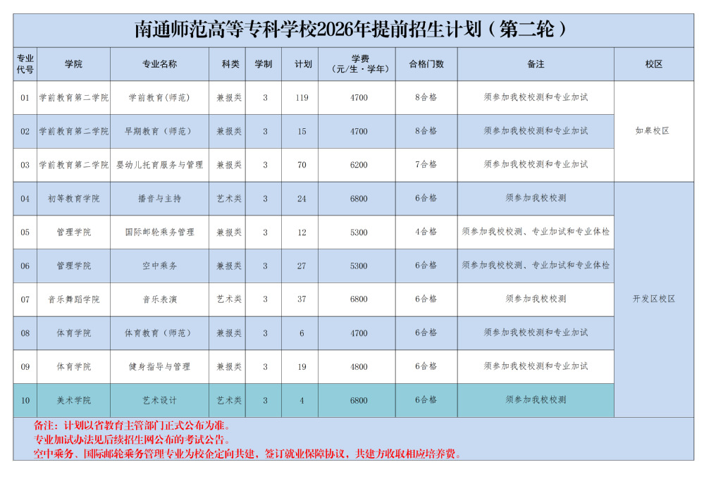 2026年提前招生计划(第二轮)