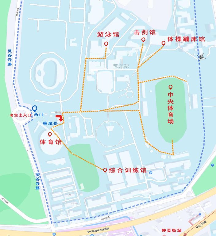 2.考生根据各项目报到时间经我校工作人员核验身份通过后,由学校西门统一入校,按照指定路线从“考生专用通道”行至体育馆。