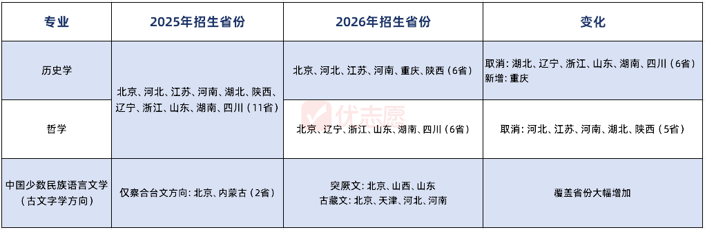 对比2025年简章,中央民族大学2026年强基计划核心框架稳定,但在招生范围、专业方向、时间节点、政策依据等方面有明确调整,整体更聚焦、更规范,对考生报考精准度要求更高。