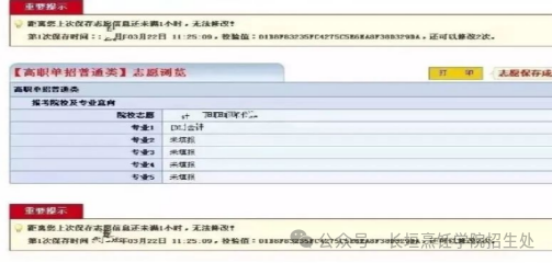 志愿保存成功后,系统自动跳转到志愿信息浏览页面,显示考生已经填报的志愿信息,考生可以点击打印按钮打印志愿信息。