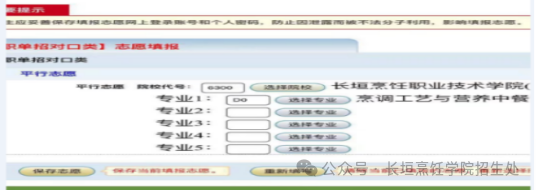 填写院校:长垣烹饪职业技术学院代码6300,系统自动显示我校名称;输入我校专业代号,系统自动会显示专业名称。