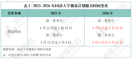 2026年报名时间整体大幅提前,且两类考生截止时间不同。2026年第一类调整为4月9日至4月30日,第二类调整为4月9日至4月26日。第二类考生截止时间比第一类早4天,需要特别注意。