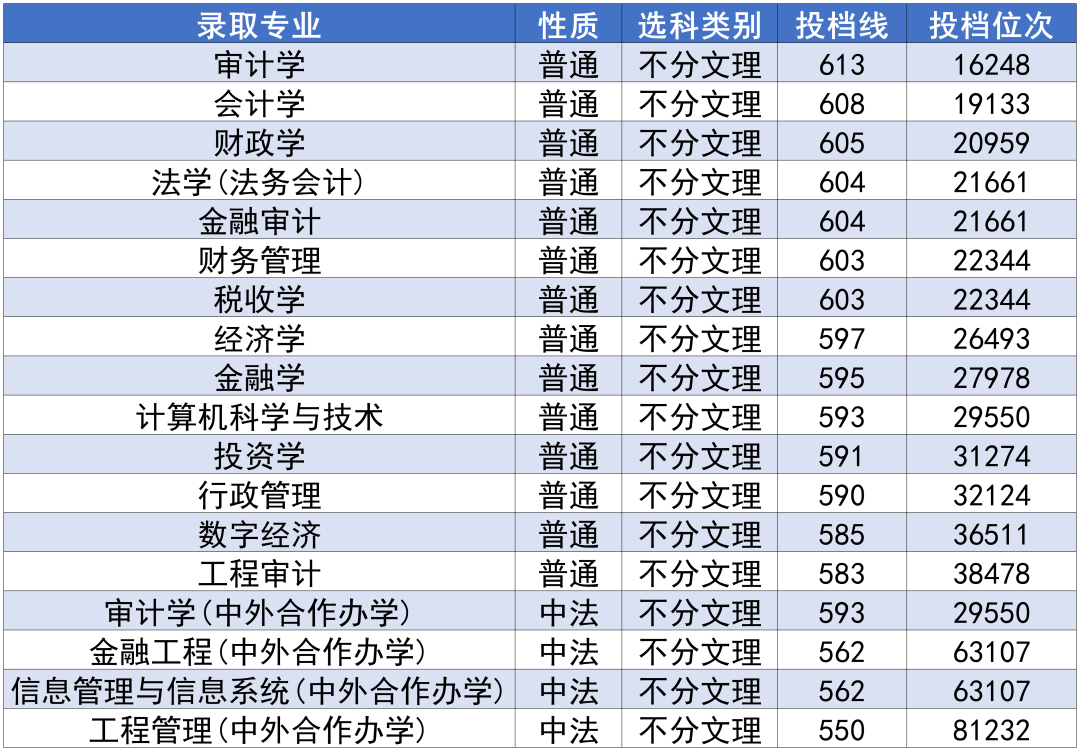 学校设有国家审计学院、会计学院等20个学院(教学部),国家审计研究院、审计科学与技术研究院、经济与金融研究院等6个特色研究院;设立润园、泽园、澄园、沁园书院,实行书院和学院“双院制”育人模式。学校现设有本科专业45个,其中国家级一流本科专业建设点18个、省级一流本科专业建设点11个;教育部特色专业建设点3个,教育部“专业综合改革试点项目”2项;江苏省“十二五”重点专业(类)5个、江苏高校品牌专业15个、江苏省特色专业15个;省级产教融合型品牌专业建设点5个。获批国家级课程思政示范课程1门、国家级一流本科课程23门、国家级规划教材6部。建有国家级虚拟教研室1个、中国审计会计案例中心1个。拥有国家级教学团队1个、国家级课程思政教学团队1个、国家级课程思政教学名师8名;江苏省高校“青蓝工程”优秀教学团队6个。建校以来,累计培养近10万名全日制毕业生,近半数从事审计及经济监督工作。根据江苏省高校招生就业指导服务中心发布的历年《江苏省本科毕业就业情况调查报告》和《江苏省用人单位招聘情况调查报告》显示,学校毕业生就业质量指数名列前茅;毕业生对母校的总体满意度和用人单位对毕业生的满意度逐年攀升,稳定在90%以上。