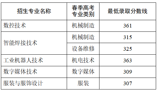 普通类各招生专业最低录取控制线:300分