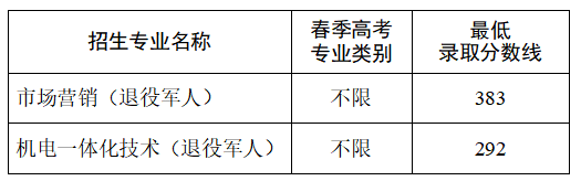 退役军人类各专业拟录取最低分数线