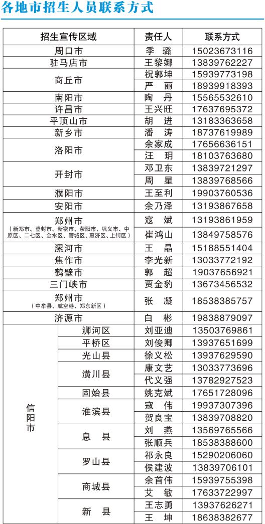 咨询电话:0376-8684343 8684848 3298788 6180977(招生及就业指导办公室)