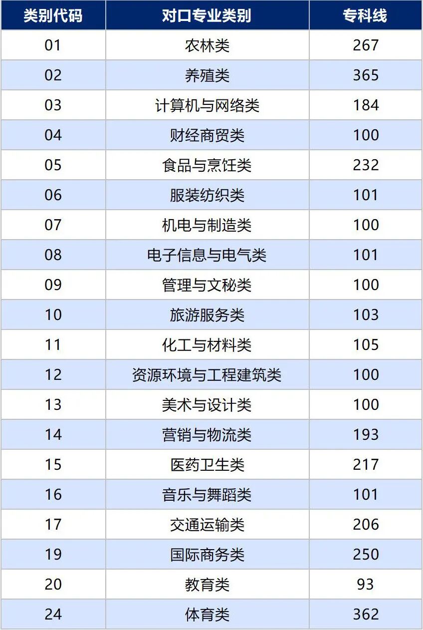 公布对口招生文化课成绩以及各专业类别录取控制分数线