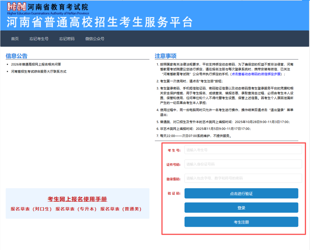 进入考生服务平台后,一定要先仔细阅读“信息公告”和“注意事项”,里面包含最新的填报政策、时间节点、违规处理等关键信息,避免因不了解政策而填错志愿。