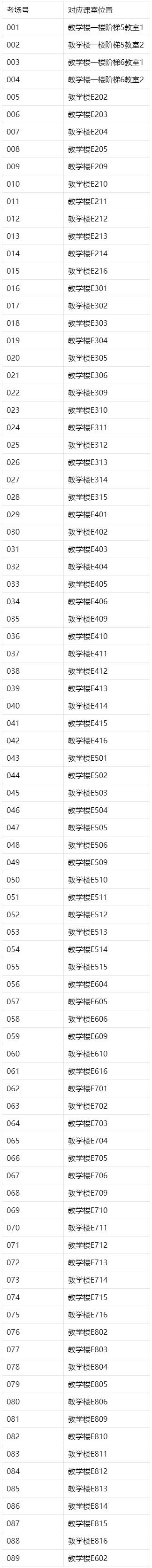 本次燕岭考点文化课统考考场安排如下,考生可根据准考证上的考场号查找对应课室位置: