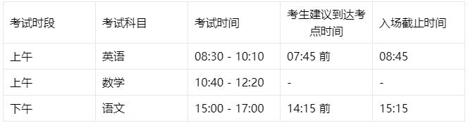 本次文化课统考时间为2026 年 4 月 11 日,各科考试时间、入场安排如下: