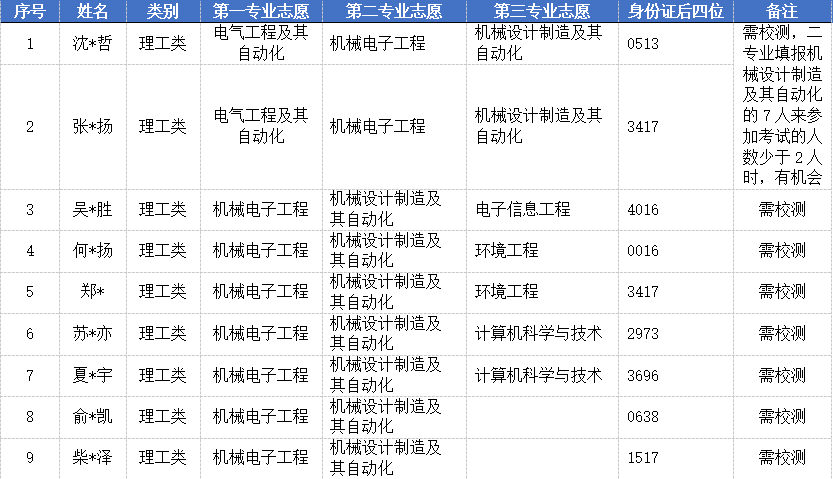 第三院校志愿报考我校的理工类第二、三专业志愿为机械设计制造及其自动化的考生(需参加测试的考生名单详见附件)。