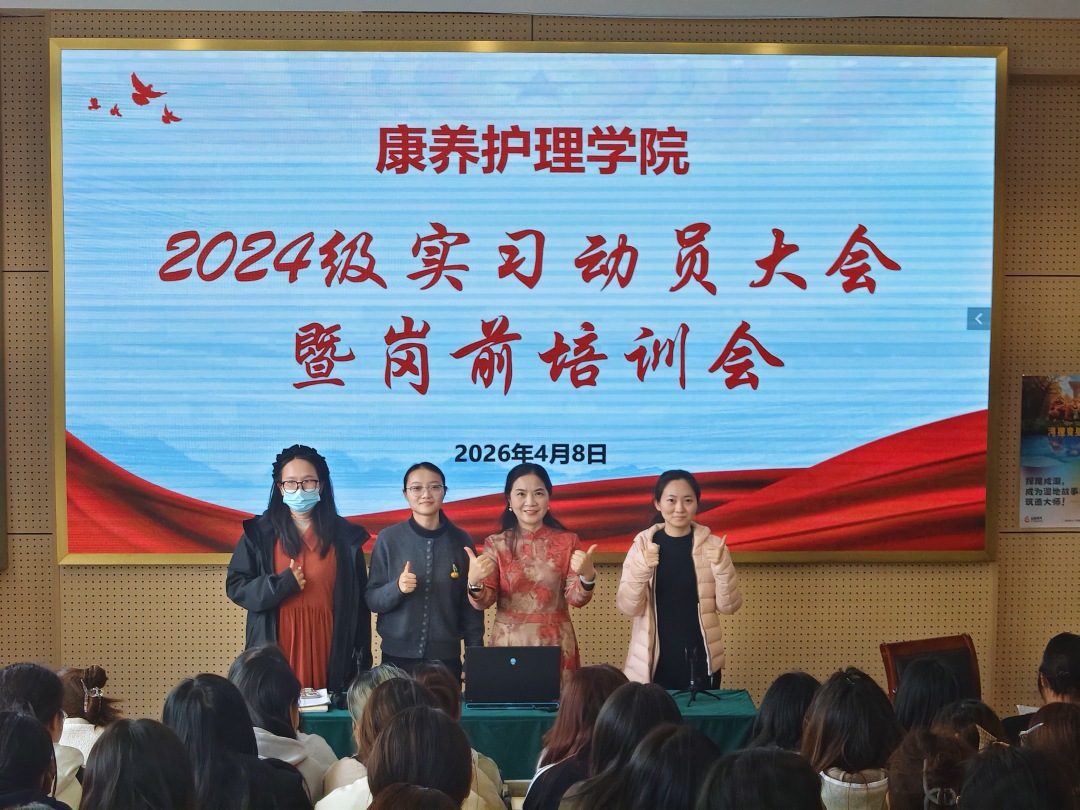 为扎实做好护理专业人才培养工作,强化实习教育规范化管理,扎实推进2024级学生实习工作,4月8日,康养护理学院在创意校区S301报告厅召开2024级学生岗前专题培训暨实习动员大会。康养护理学院院长周明霞、教师代表、辅导员代表及2024级护理专业同学参加本次活动。
