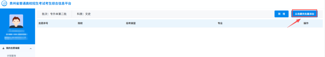方式2:通过【新增】添加志愿草稿。考生可通过左侧的【我的志愿填报】→【草稿箱】→【编辑】→【新增】添加志愿草稿。