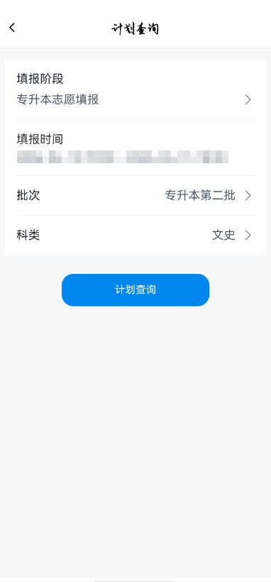 (二)计划查询登录系统后,通过系统左侧的【我的志愿填报】→【计划查询】,查询可填报的院校专业计划。