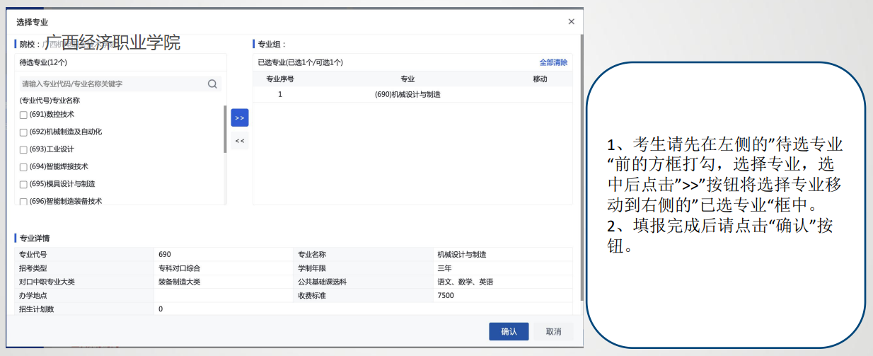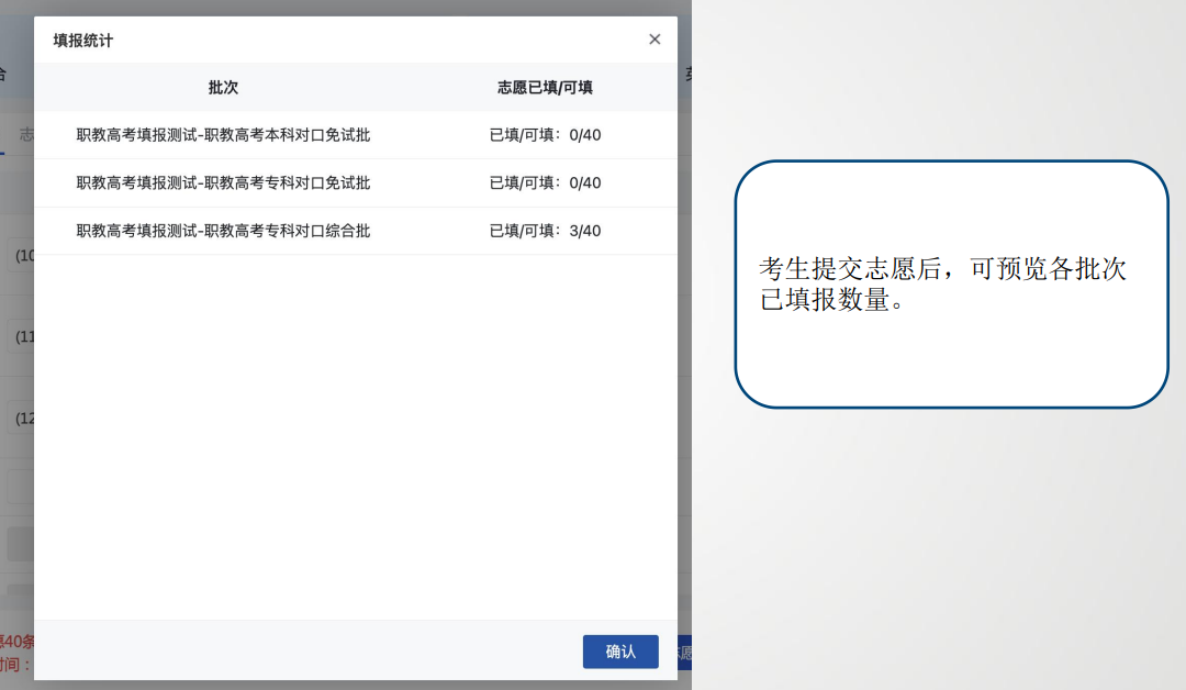 请考生仔细核对已填报志愿信息,在进行锁定考生志愿操作前,考生可在有效填报时间内多次登录系统修改志愿。