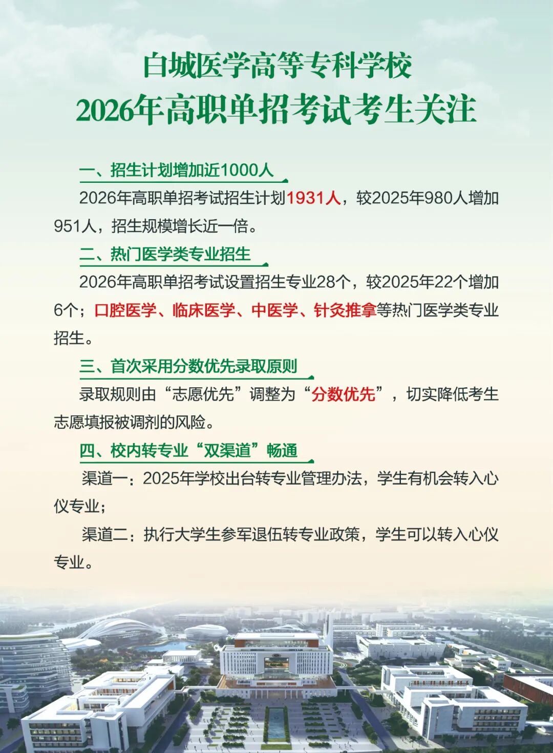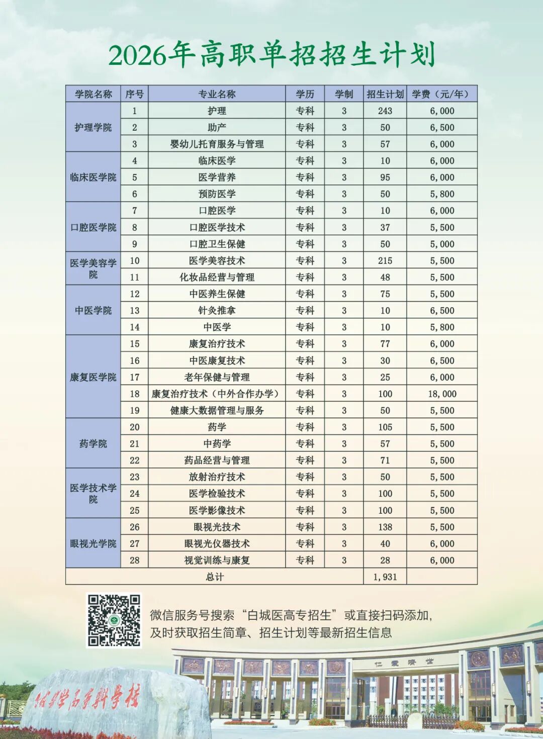 白城医学高等专科学校2026年高职单招招生简章