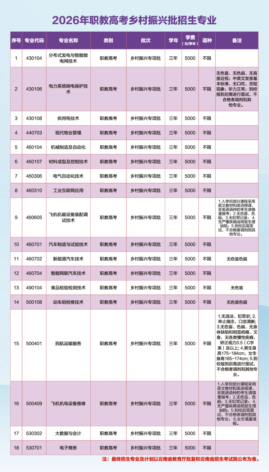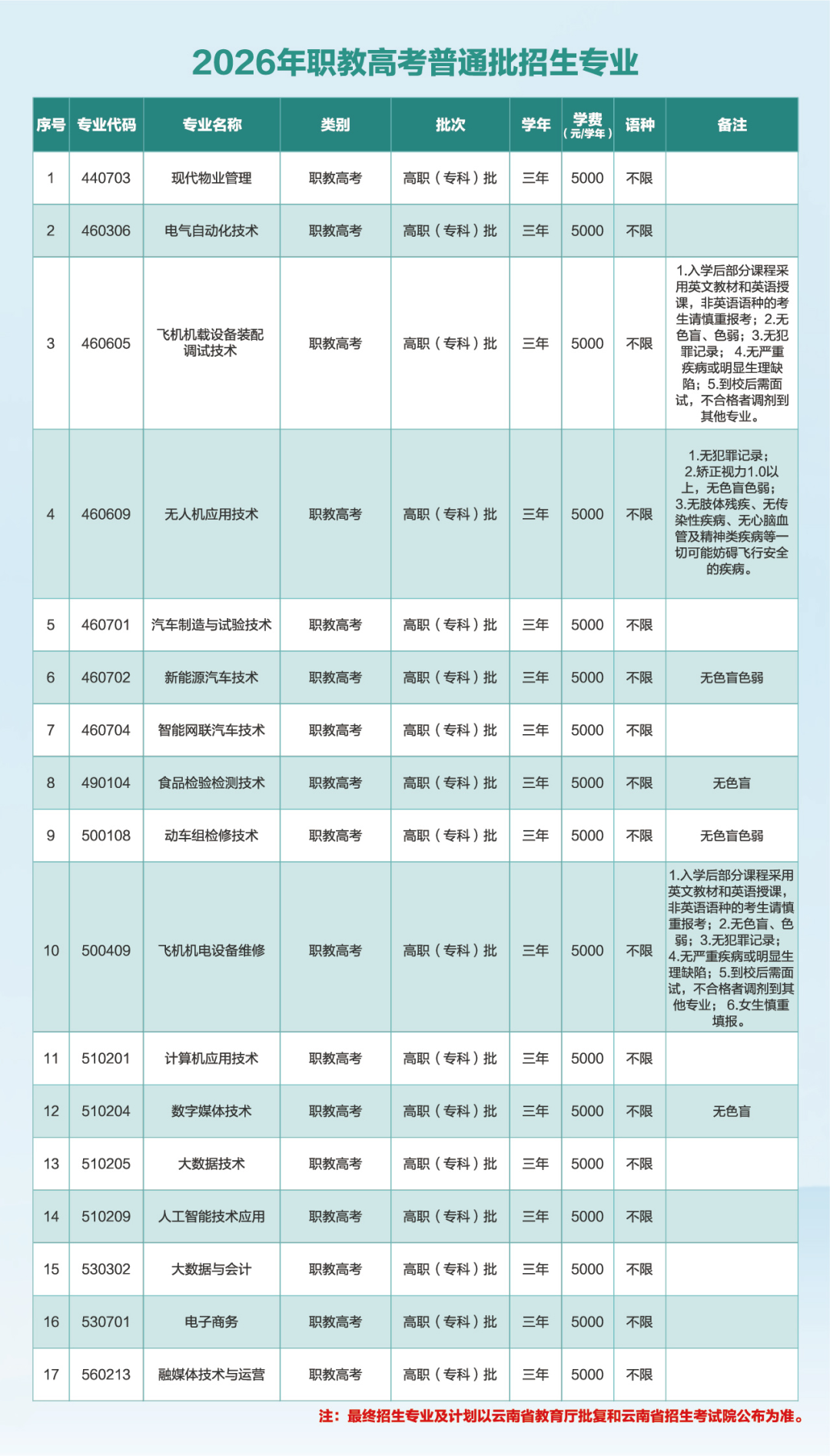 4.录取结果:2026年5月10日前,考生可在云南省招考频道网上查询本人录取结果。