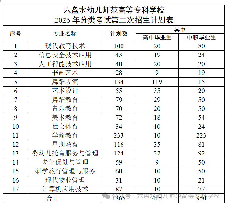六盘水幼儿师范高等专科学校2026年分类考试第二次招生简章(志愿填报代码:1531)