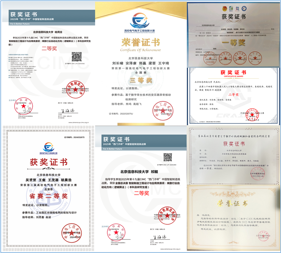 (3)培养质量:近五年学生获“挑战杯”中国大学生创业计划竞赛、中国机器人大赛、“西门子杯”中国智能制造挑战赛、北京市大学生节能节水低碳减排社会实践与科技竞赛、中国国际“互联网+”大学生创新创业大赛、高校电气电子工程创新大赛等省部级以上竞赛奖100余项,其中国家级52项、省部级64项。
